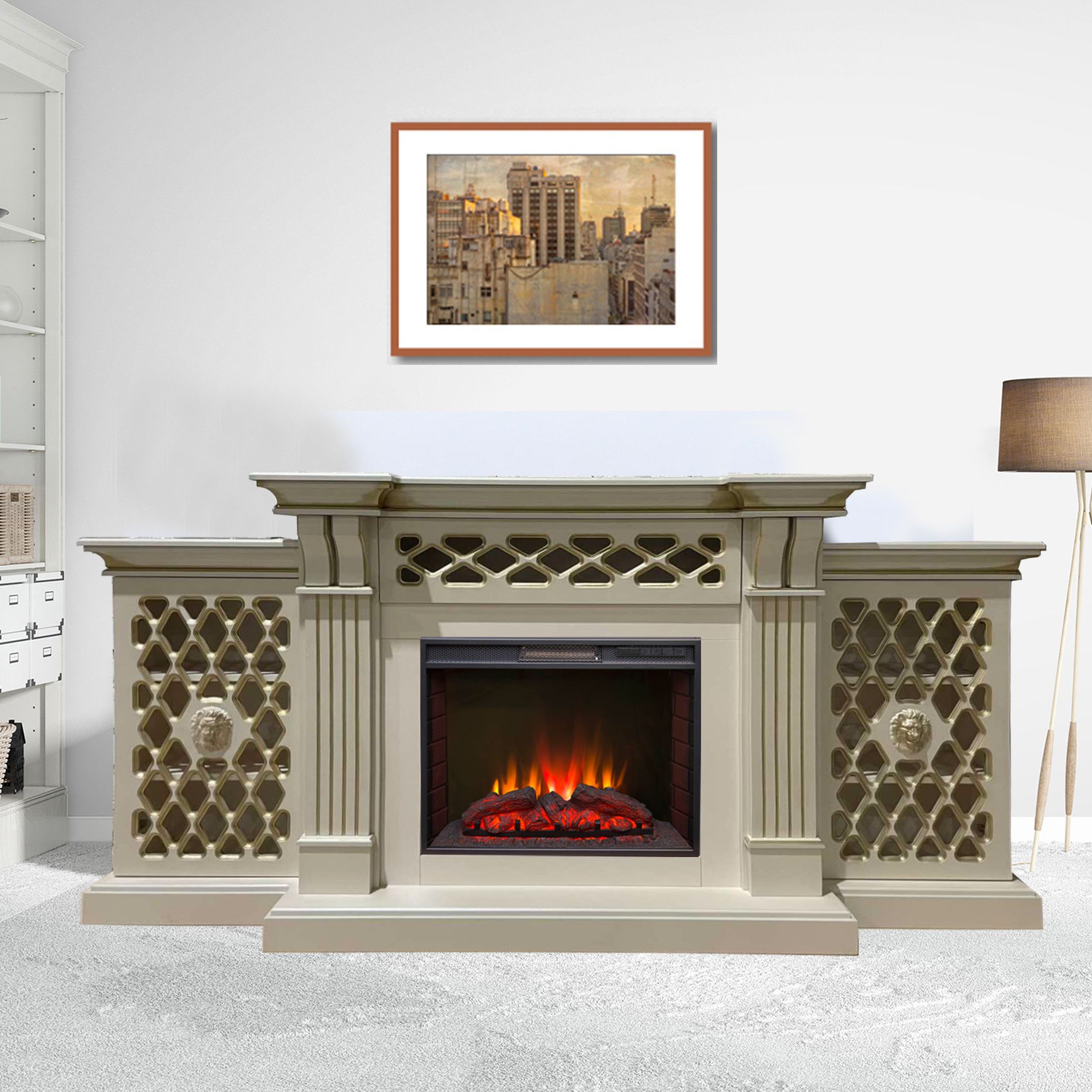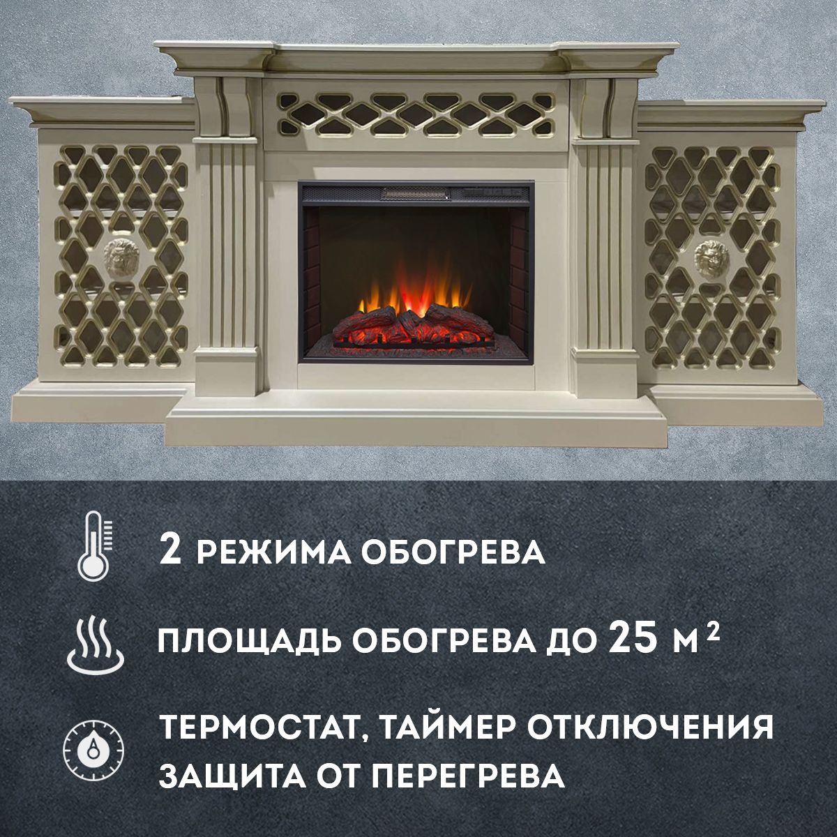 Портал укомплектован широким электроочагом Sparta 25.5 LED с великолепным разноцветным пламенем (3 цвета пламени), пламя в очаге смотрится выразительно и эффектно, а муляж дров и кирпичная кладка создают полное сходство с натуральным очагом. Эффект пламени притягивает к себе внимание с первых секунд. В очаге реализован один из самых совершенных способов визуализации пламени 2D на сегодняшний день. Визуальный эффект горящего огня создается с помощью проекционной LED-технологии.