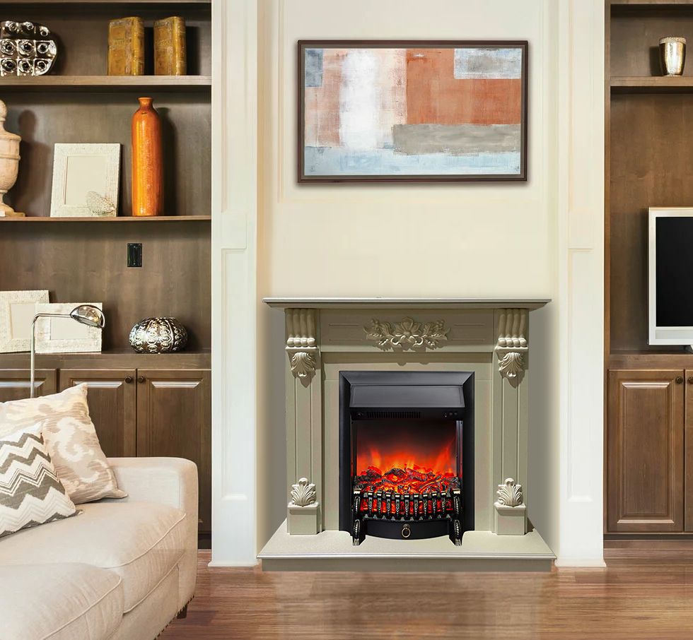 Портал укомплектован классическим электроочагом Fobos. В очаге визуальный эффект горящего огня создается с помощью проекционной LED-технологии. Присутствует звуковой эффект горения пламени и потрескивания дров. Очаг может работать как в режиме обогрева, так и в декоративном режиме без обогрева. В режиме обогрева в очаге предусмотрено 2 уровня регулировки обогрева, возможно переключение мощности обогрева 750-1500 Вт, поэтому в холодные дни данный электрокамин можно использовать как дополнительный источник тепла. Предусмотрена функция защиты от перегрева.
