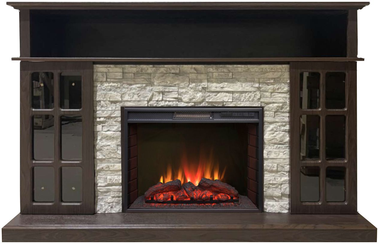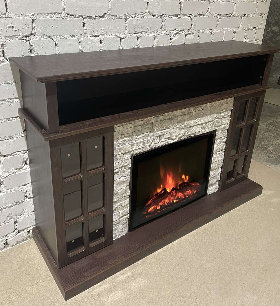 Портал укомплектован широким электроочагом Sparta 25.5 LED с великолепным разноцветным пламенем (3 цвета пламени), пламя в очаге смотрится выразительно и эффектно, а муляж дров и кирпичная кладка создают полное сходство с натуральным очагом. Эффект пламени притягивает к себе внимание с первых секунд. В очаге реализован один из самых совершенных способов визуализации пламени 2D на сегодняшний день. Визуальный эффект горящего огня создается с помощью проекционной LED-технологии.