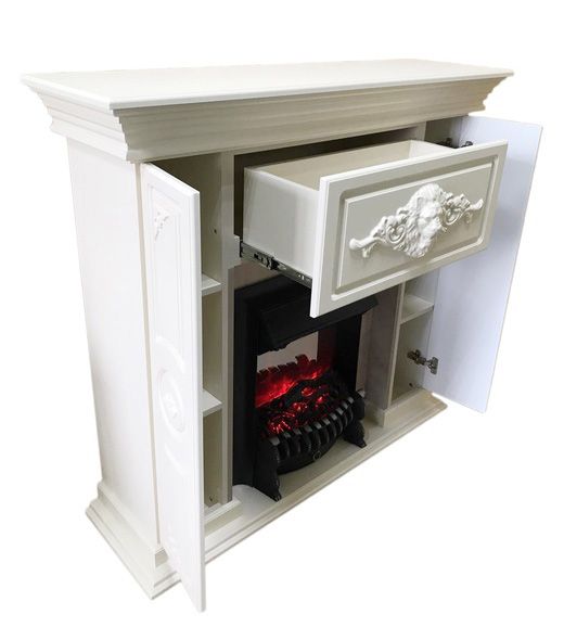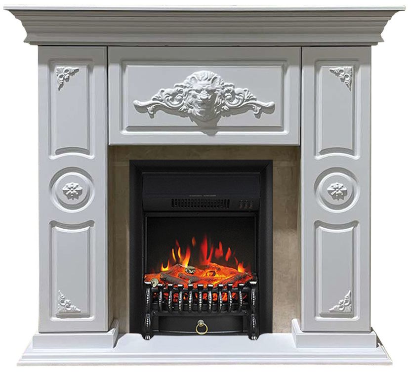 Портал укомплектован классическим электроочагом Fobos. В очаге визуальный эффект горящего огня создается с помощью проекционной LED-технологии. Присутствует звуковой эффект горения пламени и потрескивания дров. Очаг может работать как в режиме обогрева, так и в декоративном режиме без обогрева. В режиме обогрева в очаге предусмотрено 2 уровня регулировки обогрева, возможно переключение мощности обогрева 750-1500 Вт, поэтому в холодные дни данный электрокамин можно использовать как дополнительный источник тепла. Предусмотрена функция защиты от перегрева.