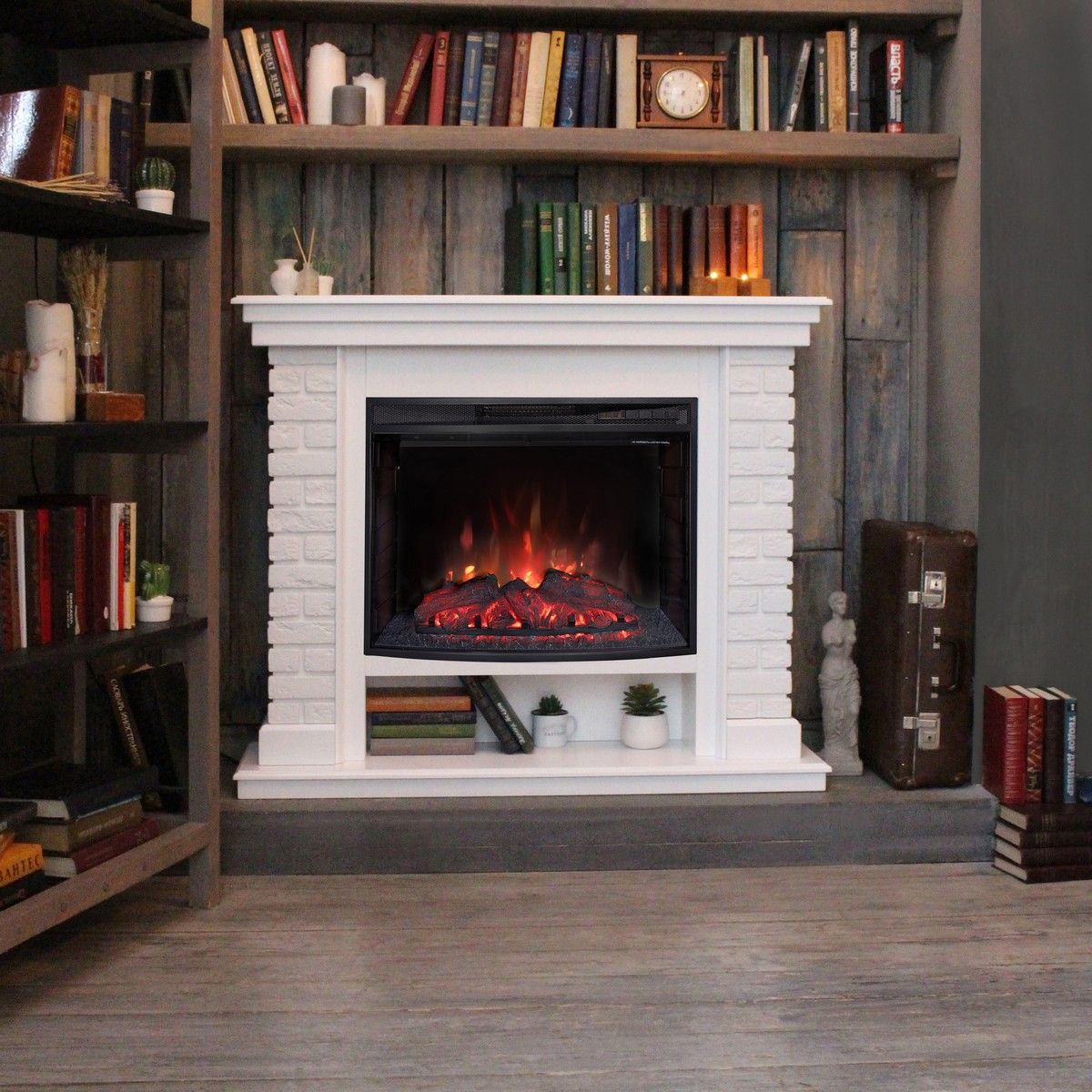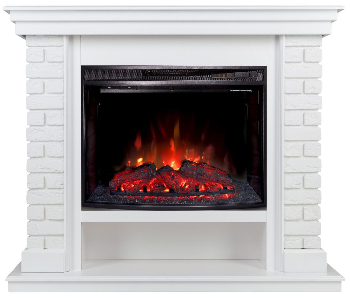 Электрокамин Эльбрус WT с очагом Evrika 25.5 LED выполнен в классическом стиле. Имитация под кирпичную кладку делают камин еще более похожим на настоящий, а полка внизу придает ему еще и практичность. Выполнен в белом цвете.