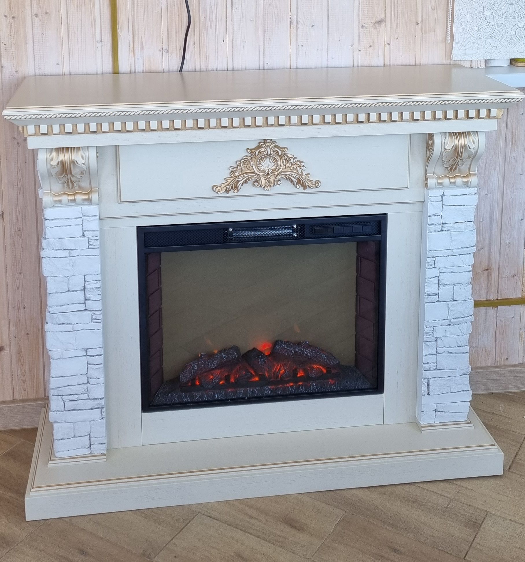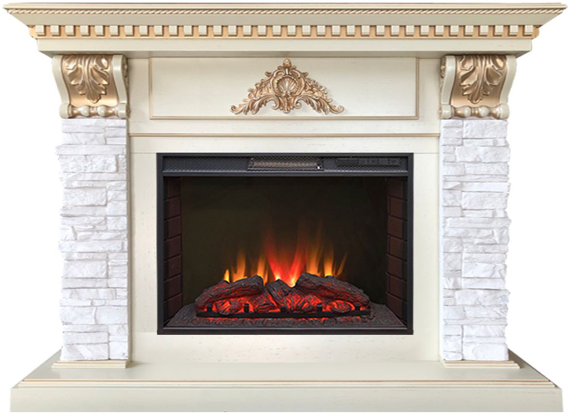 Портал укомплектован широким электроочагом Sparta 25.5 LED с великолепным разноцветным пламенем (3 цвета пламени), пламя в очаге смотрится выразительно и эффектно, а муляж дров и кирпичная кладка создают полное сходство с натуральным очагом. Эффект пламени притягивает к себе внимание с первых секунд. В очаге реализован один из самых совершенных способов визуализации пламени 2D на сегодняшний день. Визуальный эффект горящего огня создается с помощью проекционной LED-технологии.