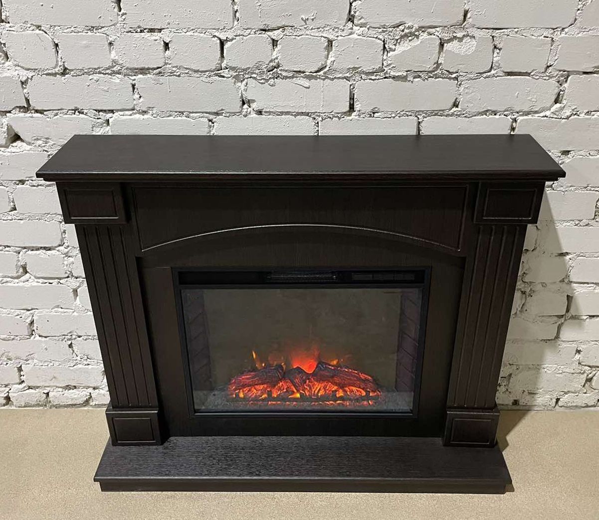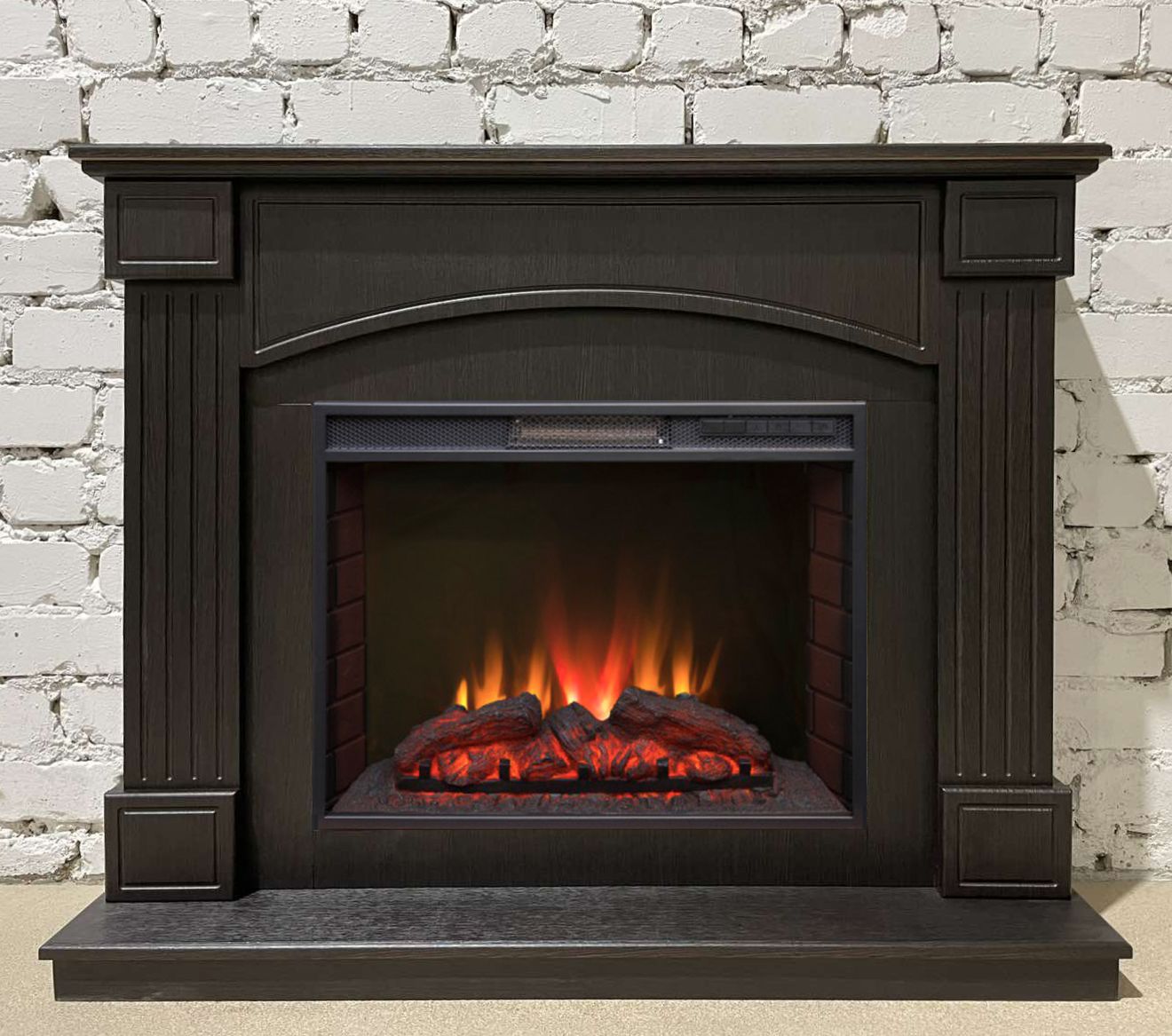 Портал укомплектован широким электроочагом Sparta 25.5 LED с великолепным разноцветным пламенем (3 цвета пламени), пламя в очаге смотрится выразительно и эффектно, а муляж дров и кирпичная кладка создают полное сходство с натуральным очагом. Эффект пламени притягивает к себе внимание с первых секунд. В очаге реализован один из самых совершенных способов визуализации пламени 2D на сегодняшний день. Визуальный эффект горящего огня создается с помощью проекционной LED-технологии.