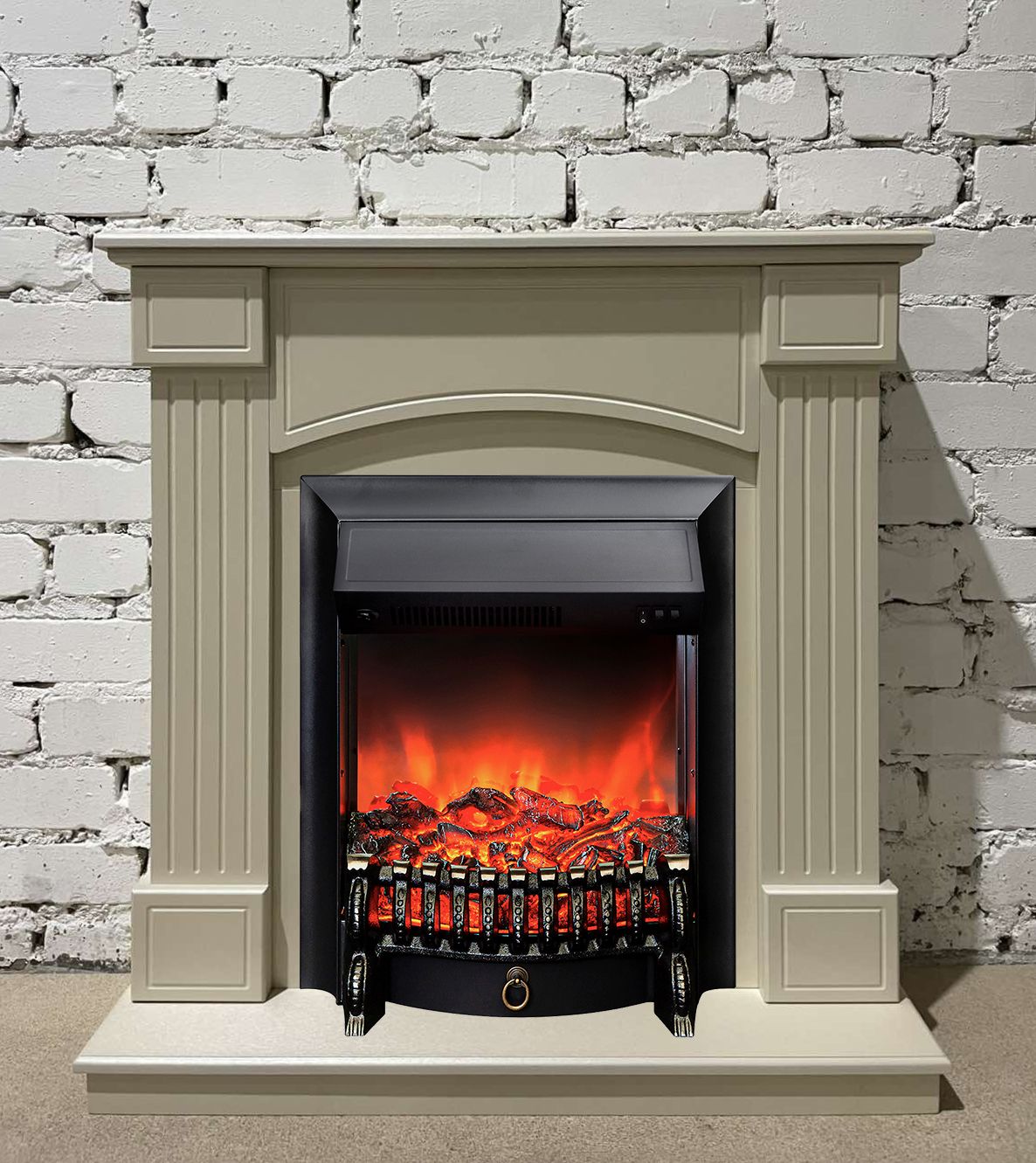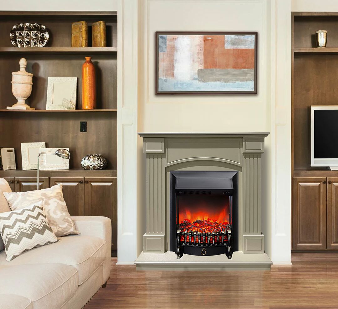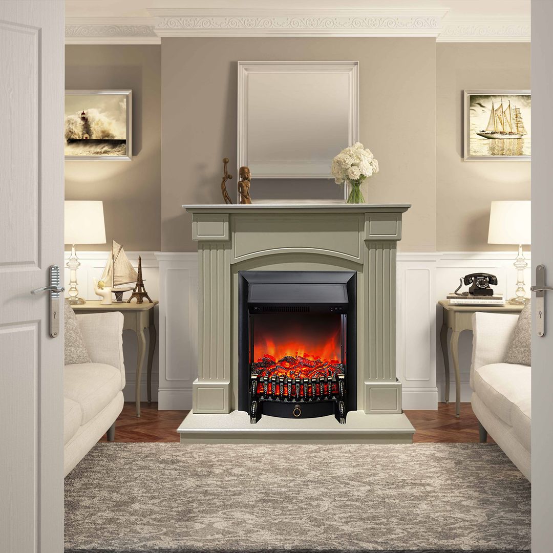 Портал укомплектован классическим электроочагом Fobos. В очаге визуальный эффект горящего огня создается с помощью проекционной LED-технологии. Присутствует звуковой эффект горения пламени и потрескивания дров. Очаг может работать как в режиме обогрева, так и в декоративном режиме без обогрева. В режиме обогрева в очаге предусмотрено 2 уровня регулировки обогрева, возможно переключение мощности обогрева 750-1500 Вт, поэтому в холодные дни данный электрокамин можно использовать как дополнительный источник тепла. Предусмотрена функция защиты от перегрева.