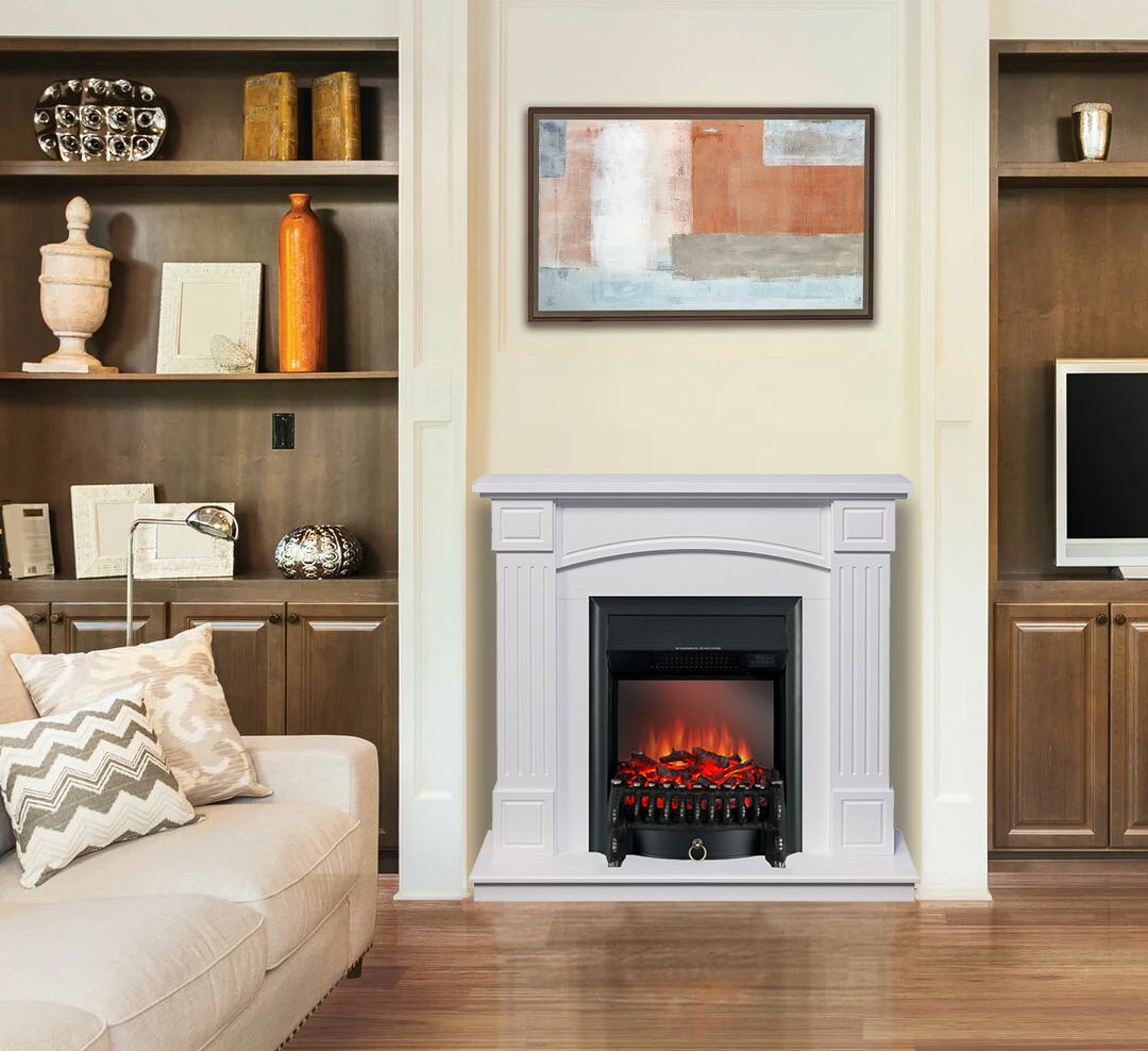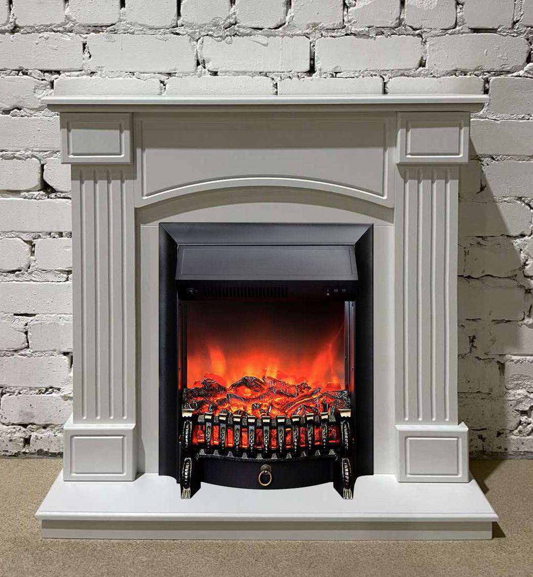 Портал укомплектован классическим электроочагом Fobos. В очаге визуальный эффект горящего огня создается с помощью проекционной LED-технологии. Присутствует звуковой эффект горения пламени и потрескивания дров. Очаг может работать как в режиме обогрева, так и в декоративном режиме без обогрева. В режиме обогрева в очаге предусмотрено 2 уровня регулировки обогрева, возможно переключение мощности обогрева 750-1500 Вт, поэтому в холодные дни данный электрокамин можно использовать как дополнительный источник тепла. Предусмотрена функция защиты от перегрева.