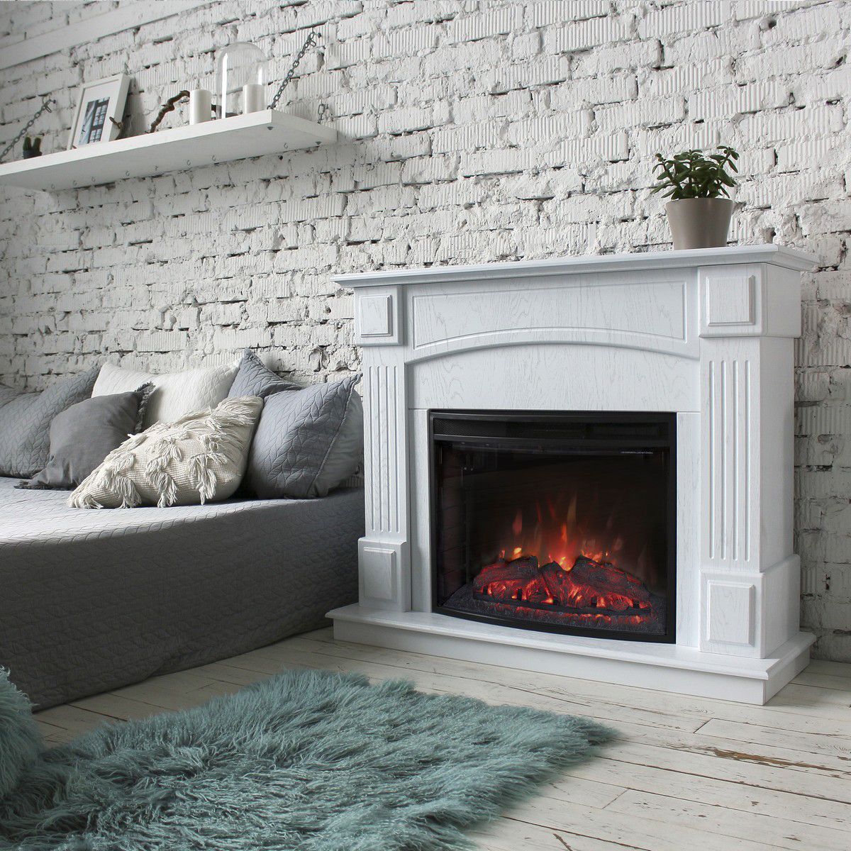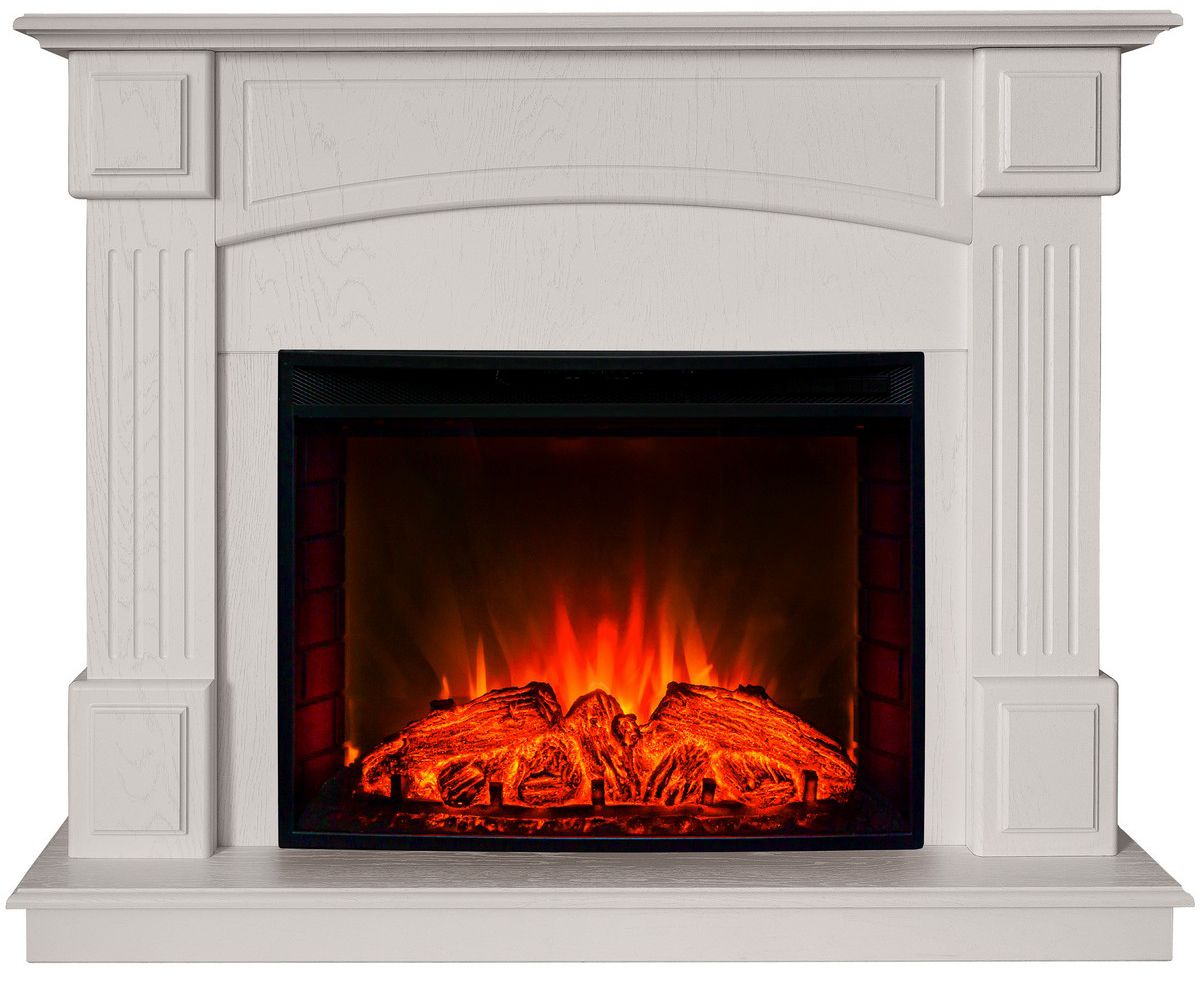 Портал укомплектован широким электроочагом Evrika 25.5 LED с великолепным разноцветным пламенем (3 цвета пламени), пламя в очаге смотрится выразительно и эффектно, а муляж дров и кирпичная кладка создают полное сходство с натуральным очагом. Эффект пламени притягивает к себе внимание с первых секунд. В очаге реализован один из самых совершенных способов визуализации пламени 2D на сегодняшний день. Визуальный эффект горящего огня создается с помощью проекционной LED-технологии.