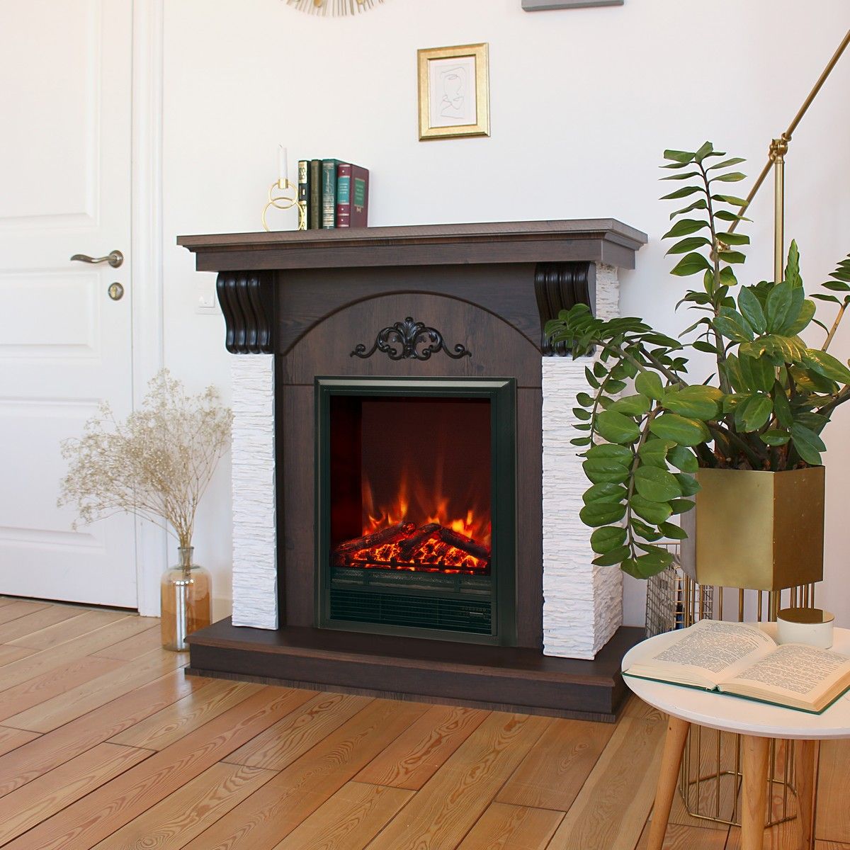 Электрокамин Corfino NT с очагом Eugene в цвете орех фактурный изготовлен из МДФ и облицован искусственным камнем. Лаконичный дизайн делает его универсальным для разных интерьеров, подходящим как для квартиры, так и для дачи.