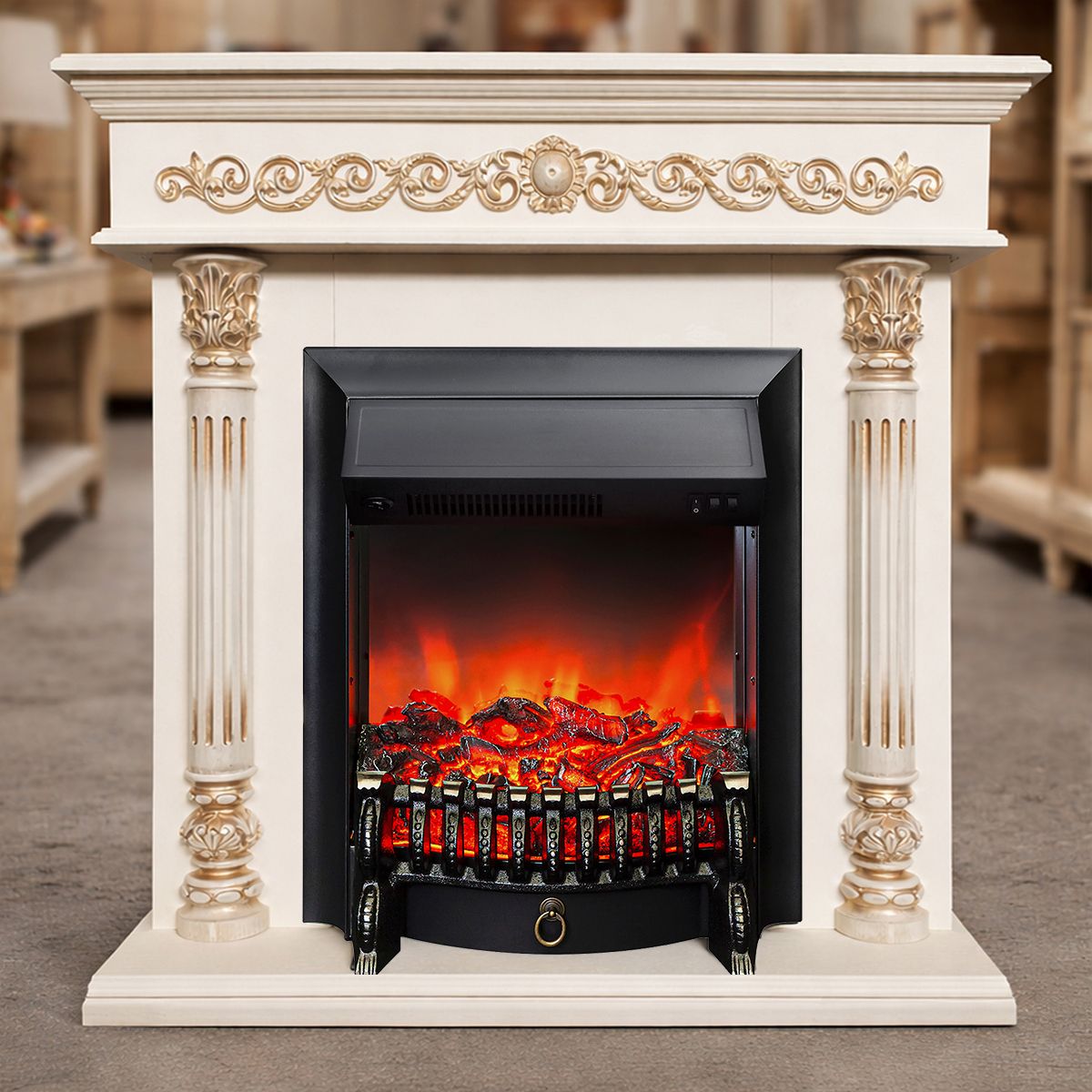 Портал электрокамина укомплектован классическим электроочагом Fobos RC с пультом дистанционного управления. В очаге визуальный эффект горящего огня создается с помощью проекционной LED-технологии. Присутствует 3 уровня регулировки яркости пламени, звуковой эффект горения пламени и потрескивания дров.