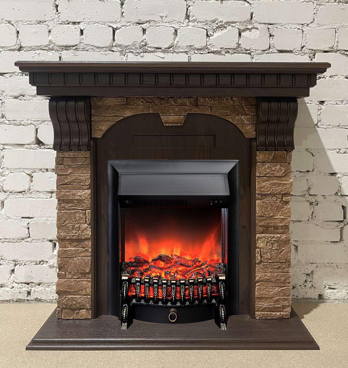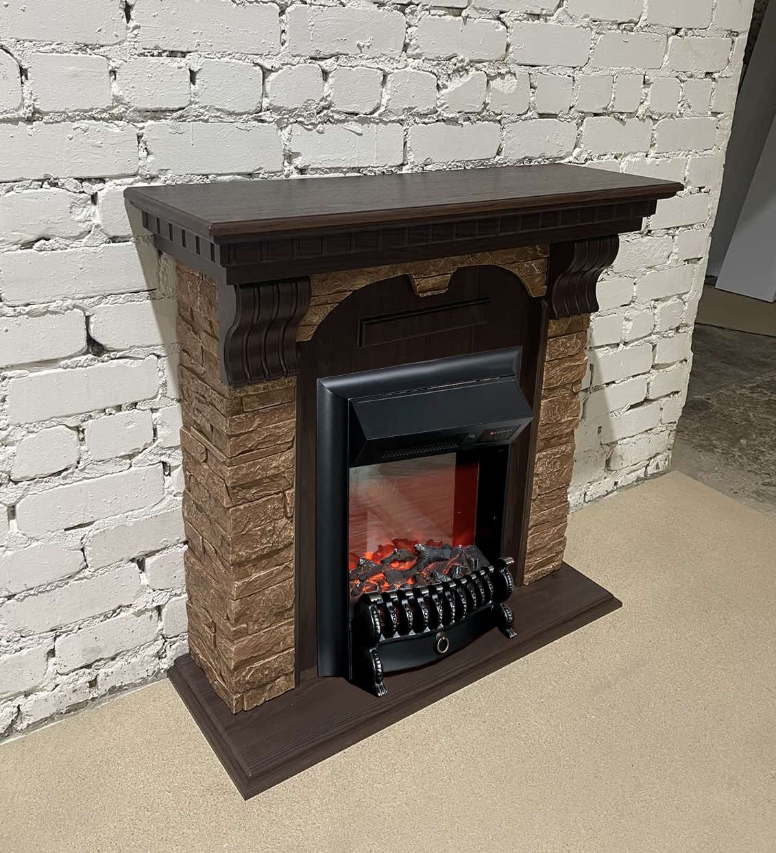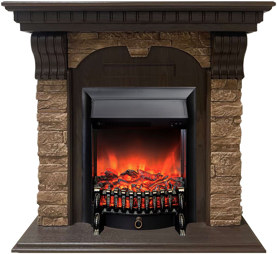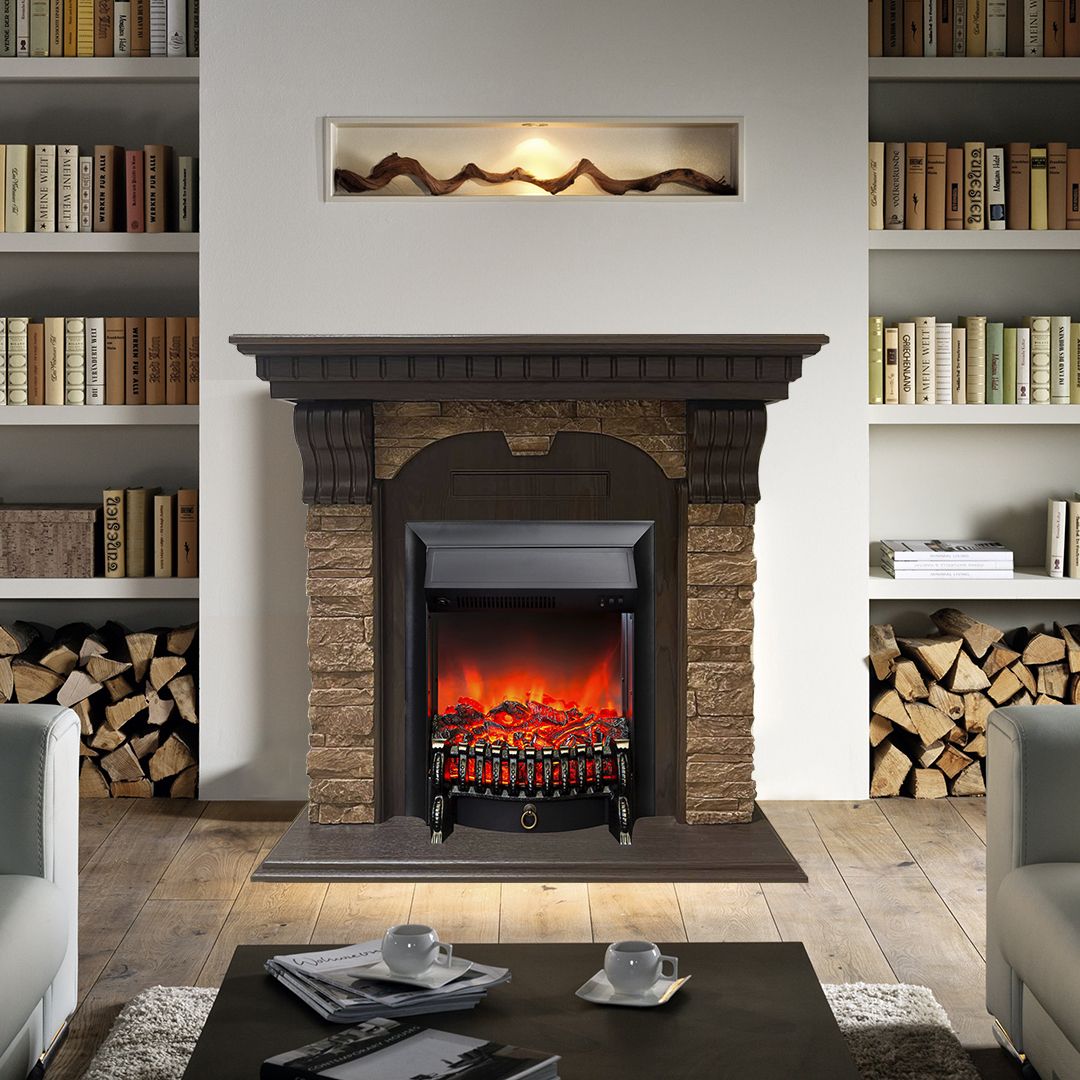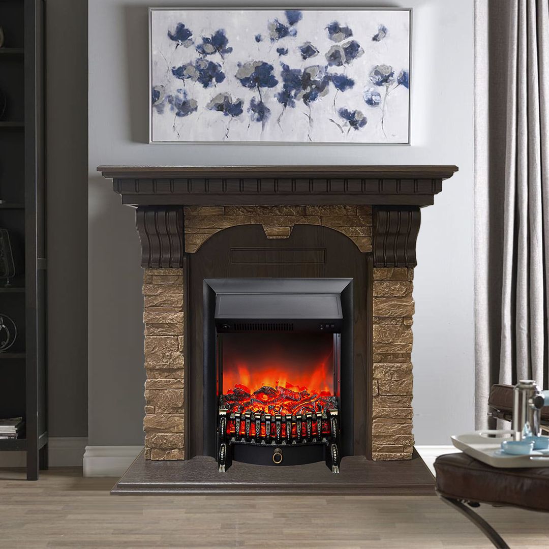 Портал укомплектован классическим электроочагом Fobos. В очаге визуальный эффект горящего огня создается с помощью проекционной LED-технологии. Присутствует звуковой эффект горения пламени и потрескивания дров. Очаг может работать как в режиме обогрева, так и в декоративном режиме без обогрева. В режиме обогрева в очаге предусмотрено 2 уровня регулировки обогрева, возможно переключение мощности обогрева 750-1500 Вт, поэтому в холодные дни данный электрокамин можно использовать как дополнительный источник тепла. Предусмотрена функция защиты от перегрева.