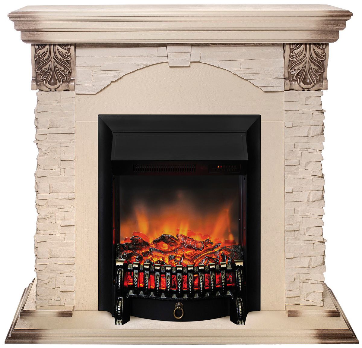 Портал укомплектован классическим электроочагом Fobos RC. В очаге визуальный эффект горящего огня создается с помощью проекционной LED-технологии. Присутствует звуковой эффект горения пламени и потрескивания дров. Очаг может работать как в режиме обогрева, так и в декоративном режиме без обогрева. В режиме обогрева в очаге предусмотрено 2 уровня регулировки обогрева, возможно переключение мощности обогрева 750-1500 Вт, поэтому в холодные дни данный электрокамин можно использовать как дополнительный источник тепла. Предусмотрена функция защиты от перегрева. Комплектуется пультом дистанционного управления.