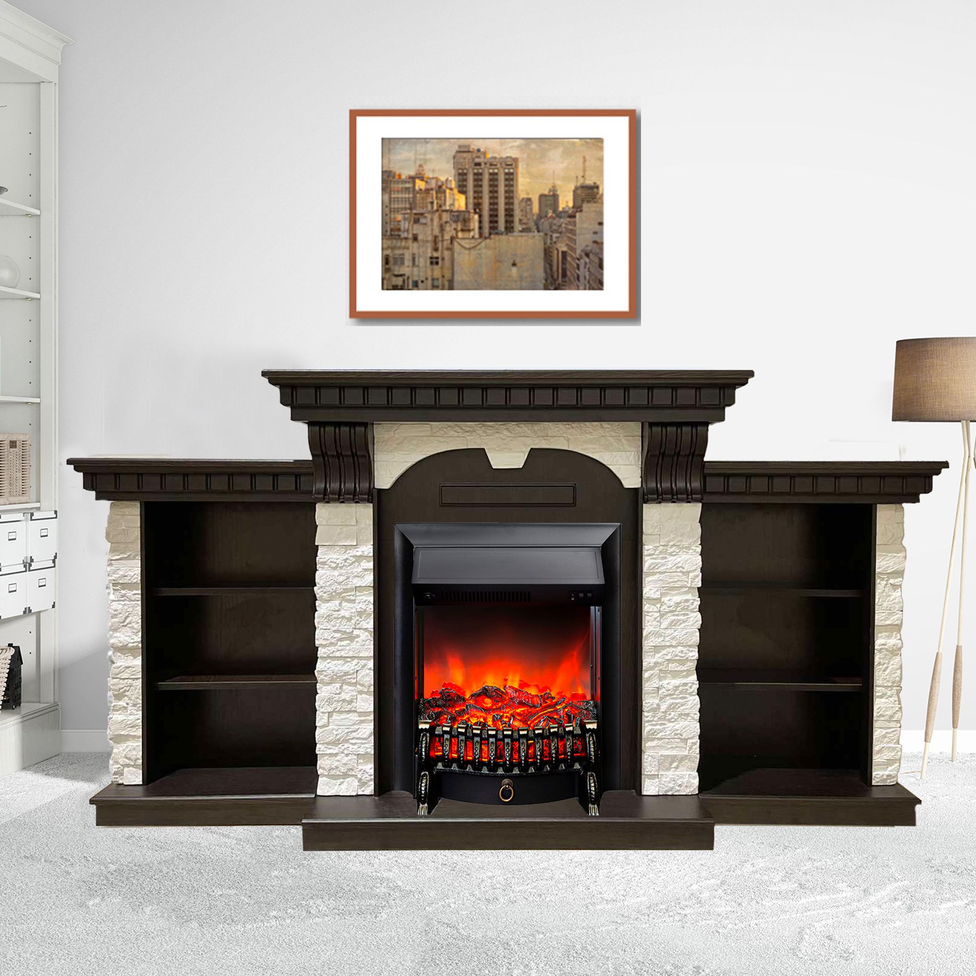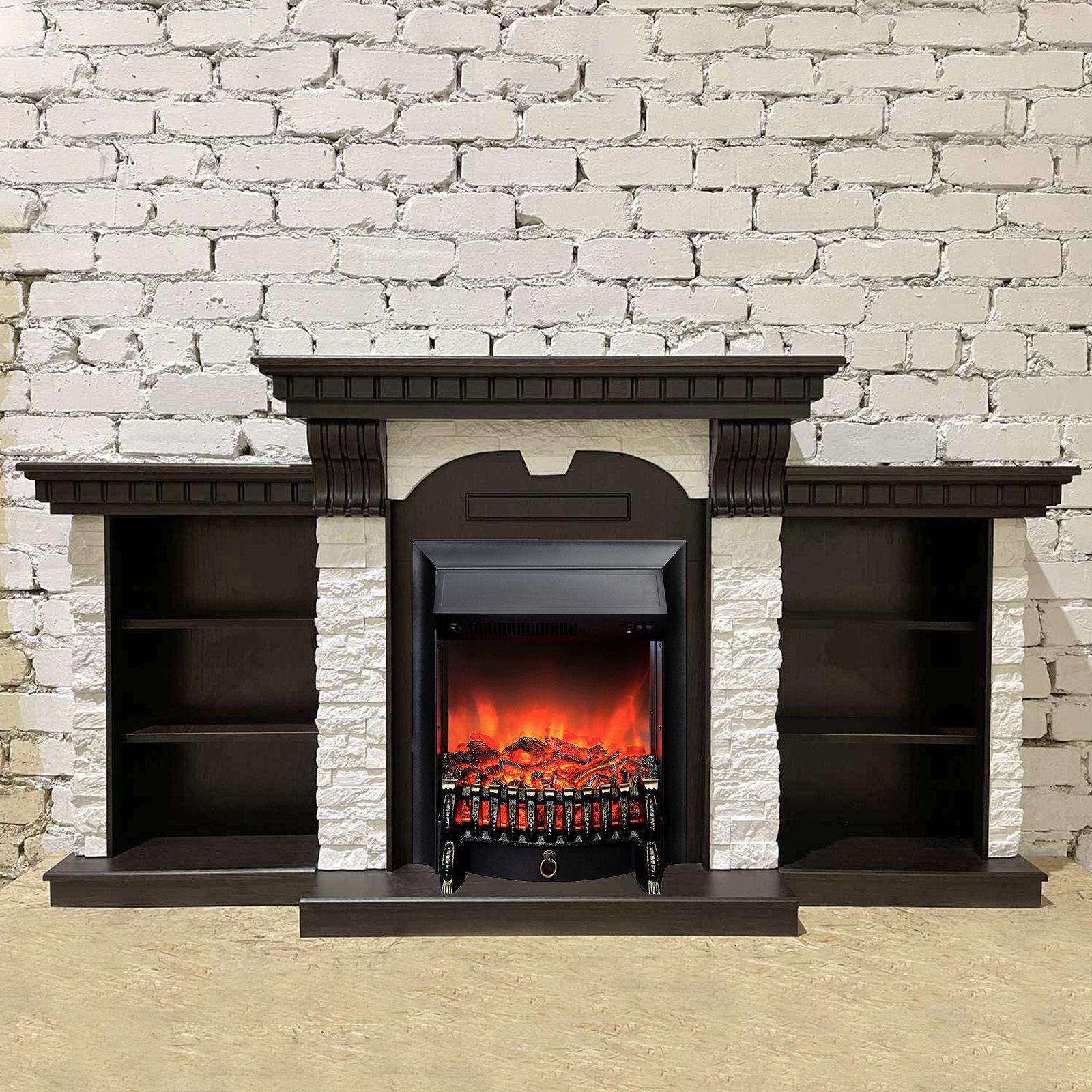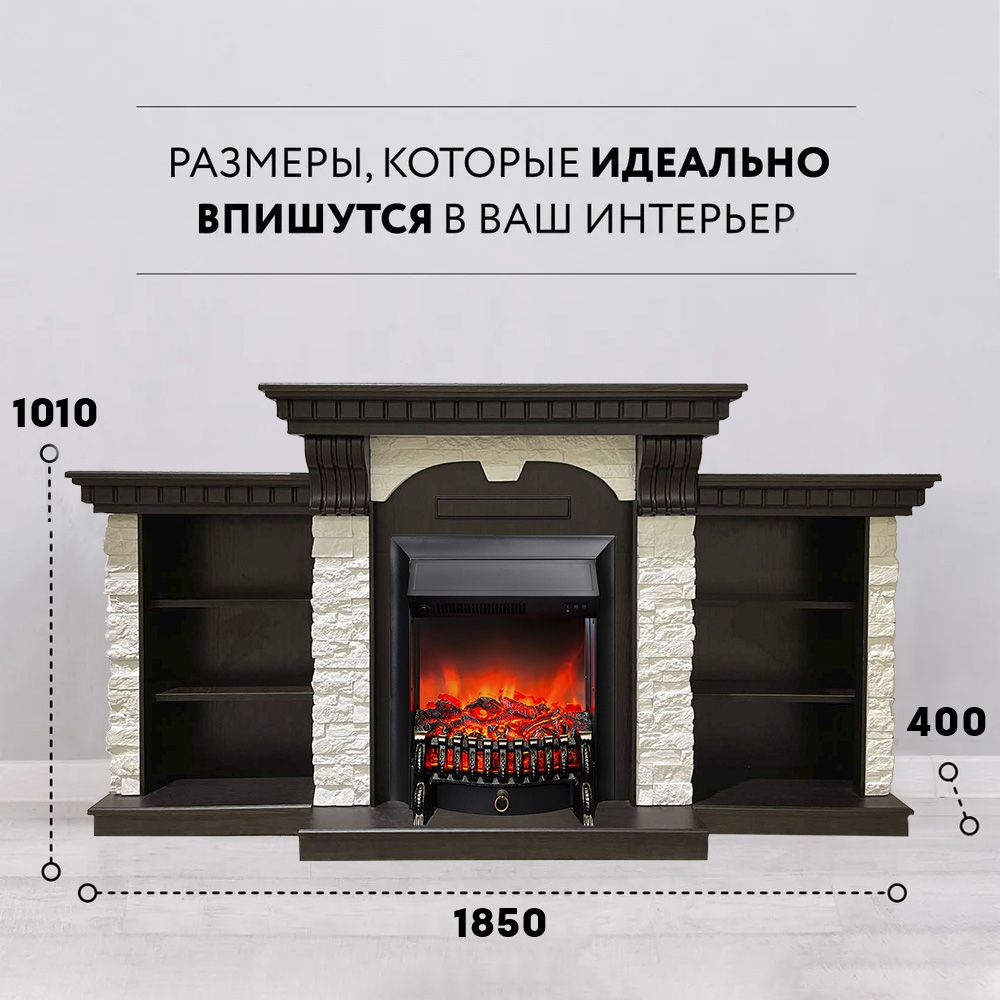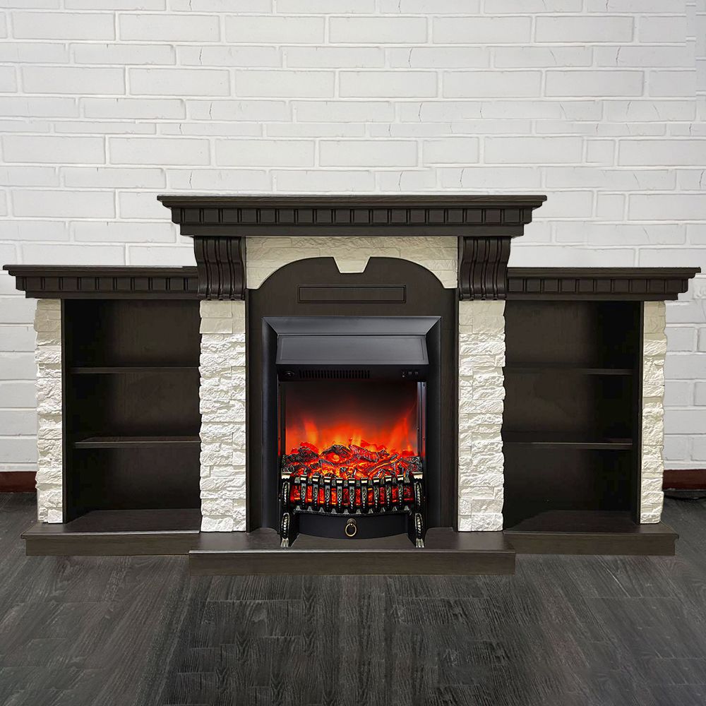 Портал электрического камина Дублин Премиум дополняют тумбы с тремя секциями полок по обе стороны от топки, которые обеспечат вам пространство для хранения всех ваших любимых книг, газет и домашних аксессуаров.