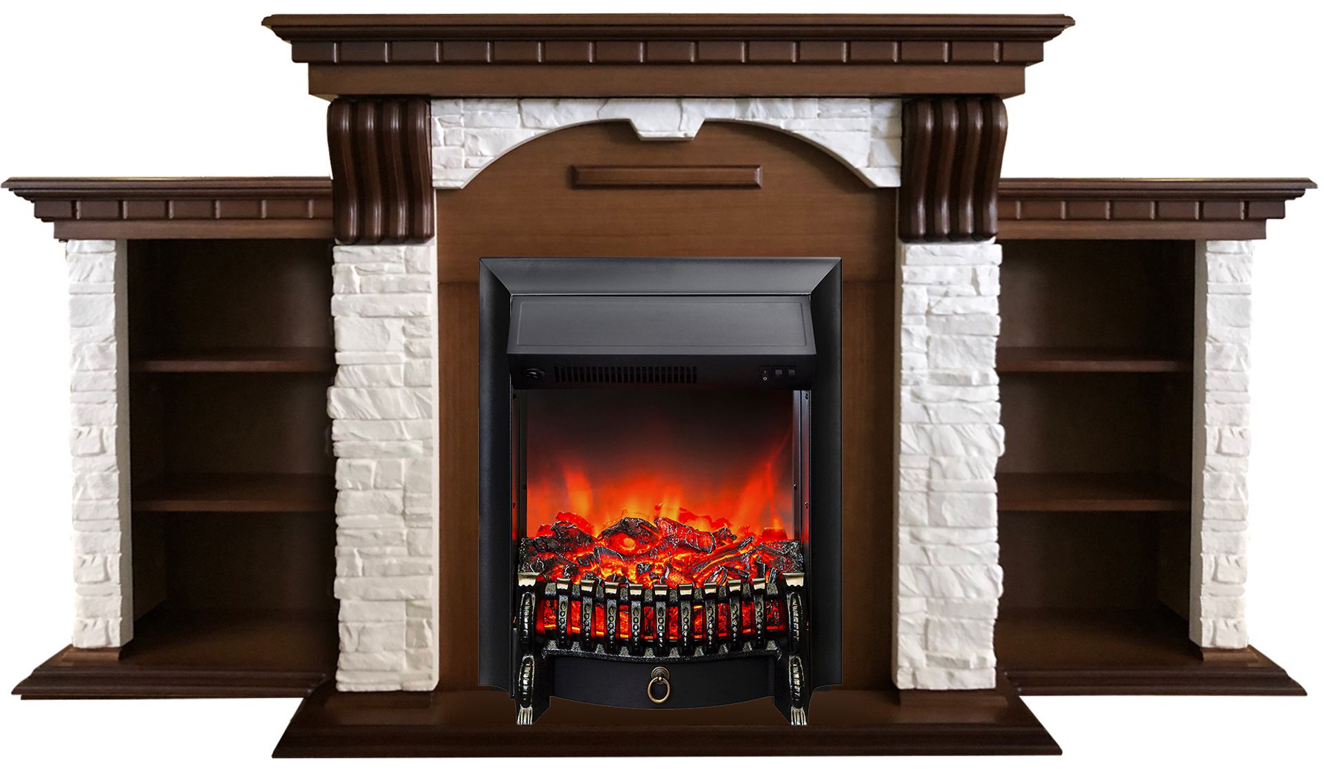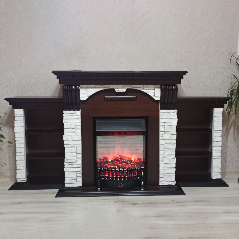 Портал электрического камина Dublin Premium дополняют тумбы с тремя секциями полок по обе стороны от топки, которые обеспечат вам пространство для хранения всех ваших любимых книг, газет и домашних аксессуаров.