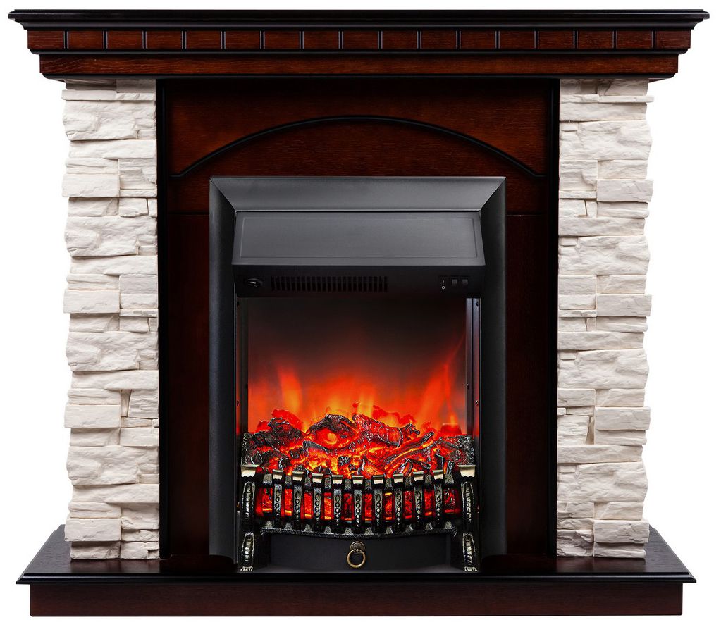 Портал укомплектован классическим электроочагом Fobos. В очаге визуальный эффект горящего огня создается с помощью проекционной LED-технологии. Присутствует звуковой эффект горения пламени и потрескивания дров. Очаг может работать как в режиме обогрева, так и в декоративном режиме без обогрева. В режиме обогрева в очаге предусмотрено 2 уровня регулировки обогрева, возможно переключение мощности обогрева 750-1500 Вт, поэтому в холодные дни данный электрокамин можно использовать как дополнительный источник тепла. Предусмотрена функция защиты от перегрева.