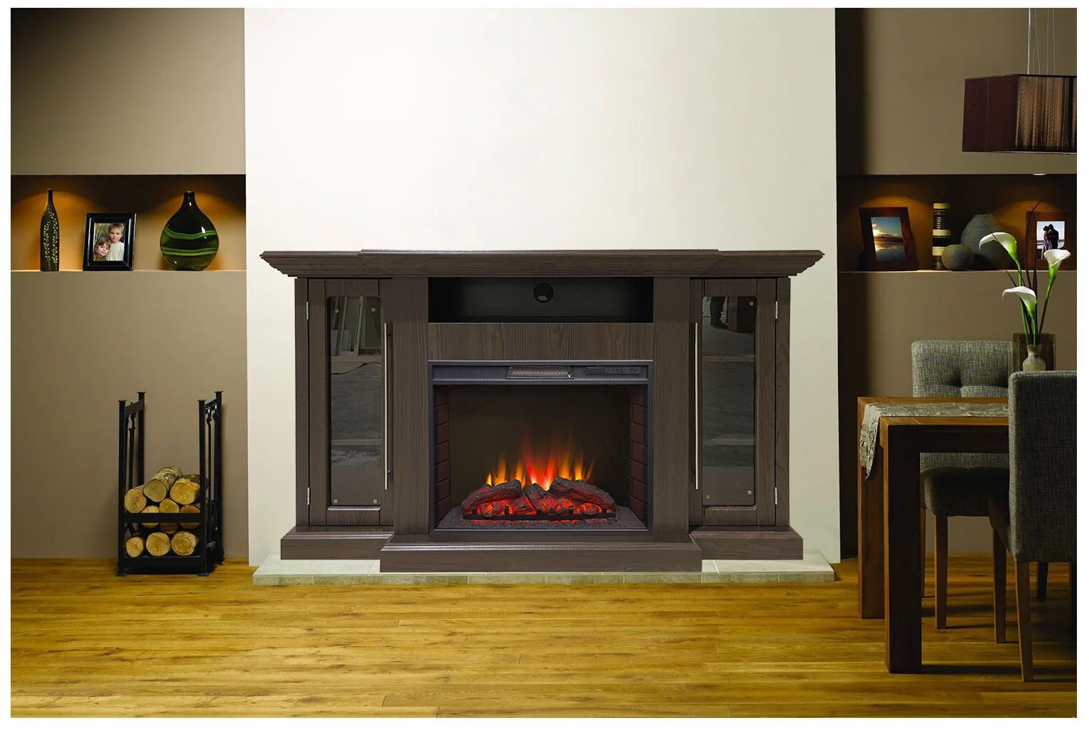 Электрокамин Элтон LUX AO с очагом Sparta 25.5 LED - отличная модель, сочетающая в себе функциональность и легкость. Тут нет перегруженности с материалами, все достаточно просто и легко. Тумбы по обе стороны топки закрываются стеклянными дверцами.