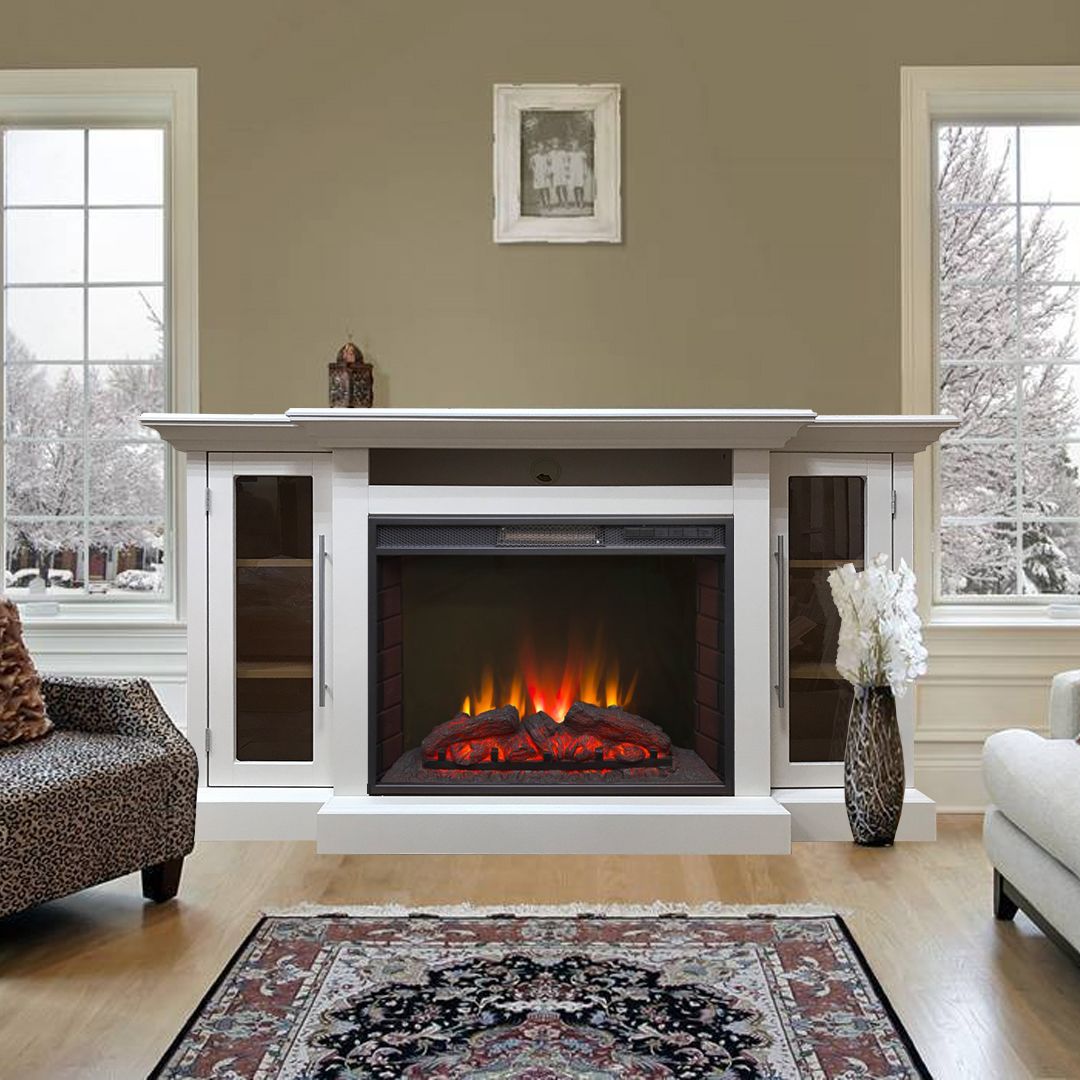 В очаге предусмотрена функция регулировки яркости пламени, термостат, таймер отключения и защита от перегрева. Присутствует звуковой эффект горения пламени и потрескивания дров. Очаг может работать как в режиме обогрева, так и в декоративном режиме без обогрева. В режиме обогрева в очаге предусмотрено 2 уровня регулировки обогрева, возможно переключение мощности обогрева 1000-2000 Вт, поэтому в холодные дни данный электрокамин можно использовать как дополнительный источник тепла. Комплектуется пультом дистанционного управления.
