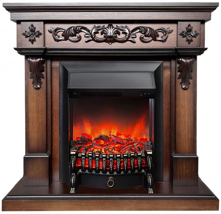 Портал электрокамина укомплектован классическим электроочагом Fobos. В очаге визуальный эффект горящего огня создается с помощью проекционной LED-технологии. Присутствует звуковой эффект горения пламени и потрескивания дров.