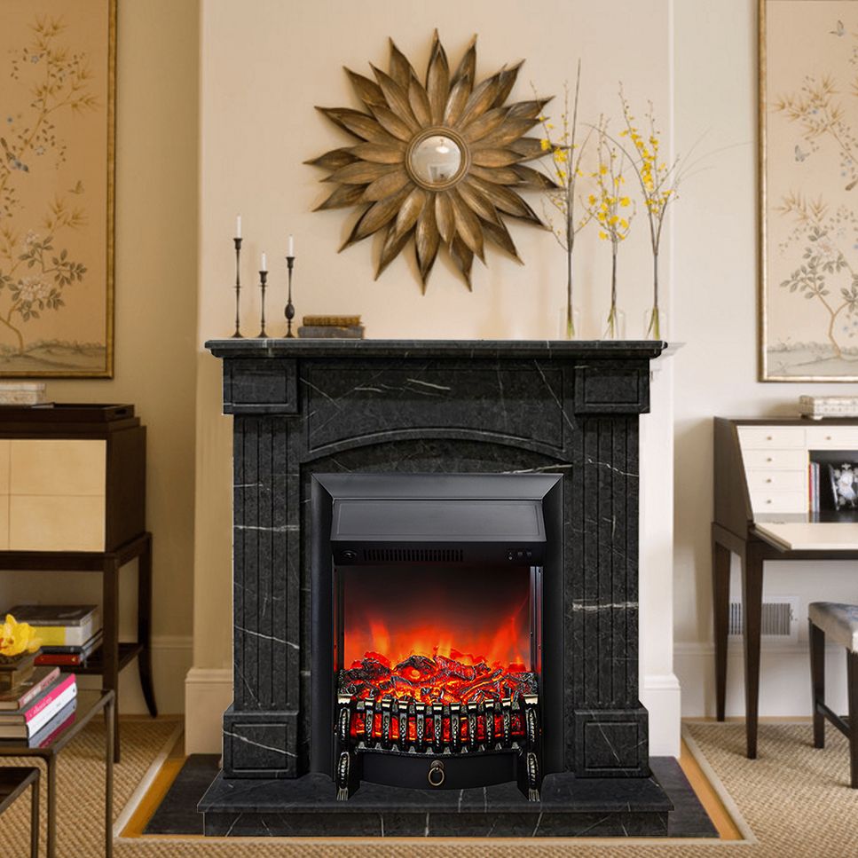 Портал укомплектован классическим электроочагом Fobos. В очаге визуальный эффект горящего огня создается с помощью проекционной LED-технологии. Присутствует звуковой эффект горения пламени и потрескивания дров. Очаг может работать как в режиме обогрева, так и в декоративном режиме без обогрева. В режиме обогрева в очаге предусмотрено 2 уровня регулировки обогрева, возможно переключение мощности обогрева 750-1500 Вт, поэтому в холодные дни данный электрокамин можно использовать как дополнительный источник тепла. Предусмотрена функция защиты от перегрева.