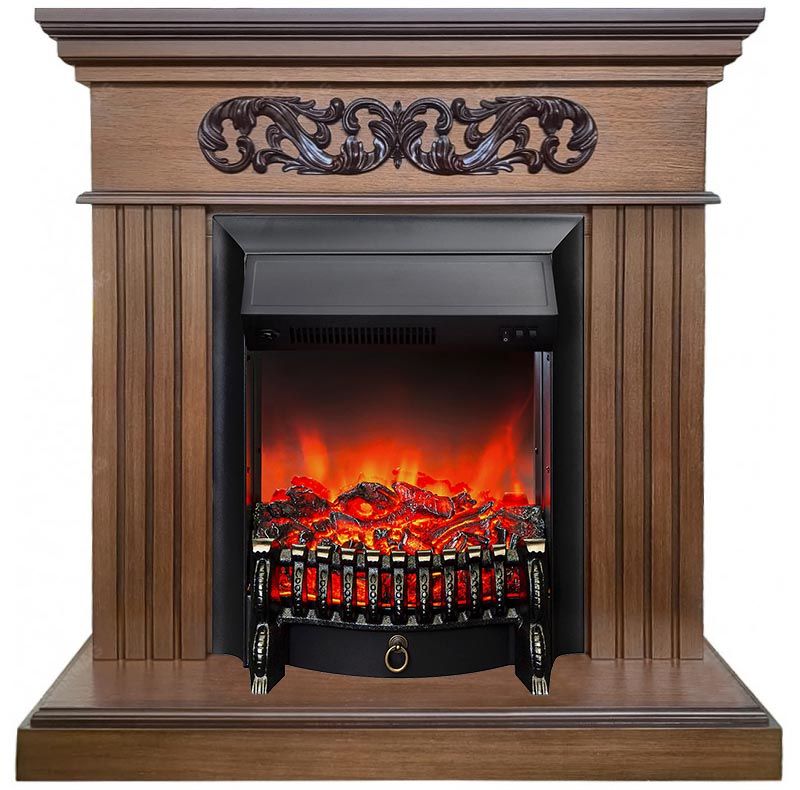 Портал электрокамина укомплектован классическим электроочагом Fobos. В очаге визуальный эффект горящего огня создается с помощью проекционной LED-технологии. Присутствует звуковой эффект горения пламени и потрескивания дров.