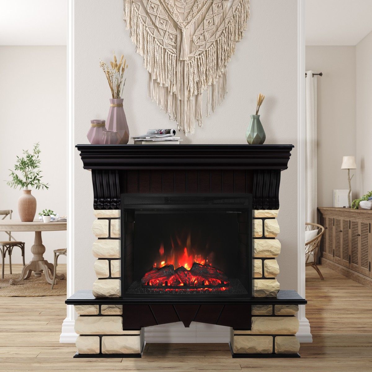 Тип портала каминакаменныйМатериал порталаМДФ, искусственный каменьРазмер электроочагаширокий -