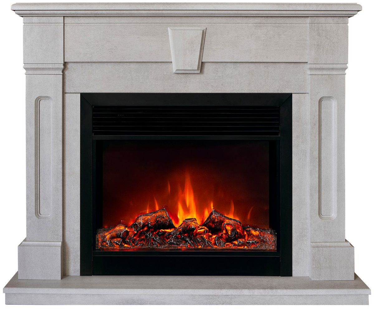 Портал камина укомплектован широким электроочагом Moonblaze Deluxe Black с великолепным пламенем, пламя в очаге смотрится выразительно и эффектно, а муляж дров создают полное сходство с натуральным очагом. Эффект пламени притягивает к себе внимание с первых секунд. В очаге реализован один из самых совершенных способов визуализации пламени 2D на сегодняшний день. Визуальный эффект горящего огня создается с помощью проекционной LED-технологии.