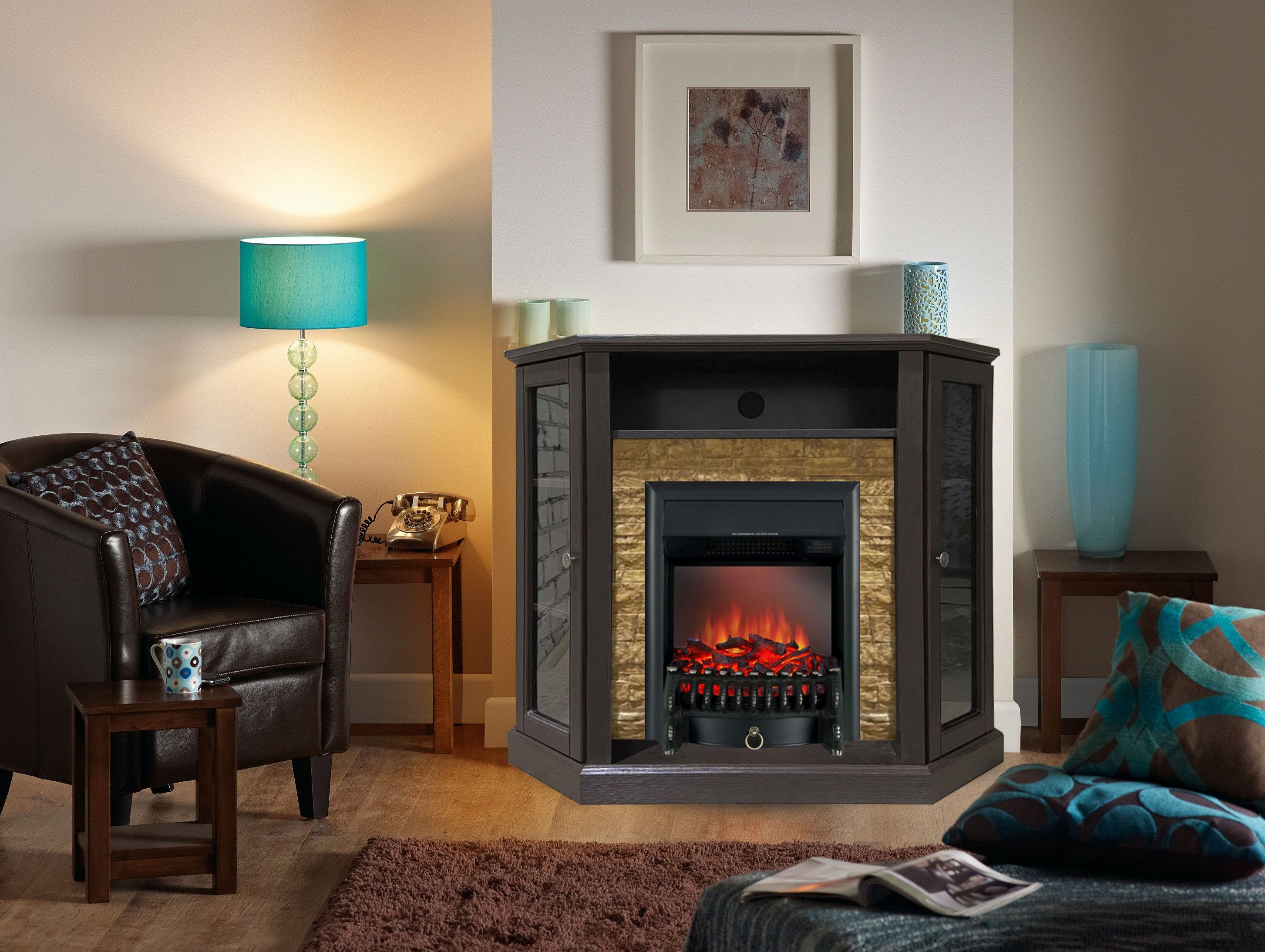 Портал укомплектован классическим электроочагом Fobos. В очаге визуальный эффект горящего огня создается с помощью проекционной LED-технологии. Присутствует звуковой эффект горения пламени и потрескивания дров. Очаг может работать как в режиме обогрева, так и в декоративном режиме без обогрева. В режиме обогрева в очаге предусмотрено 2 уровня регулировки обогрева, возможно переключение мощности обогрева 750-1500 Вт, поэтому в холодные дни данный электрокамин можно использовать как дополнительный источник тепла. Предусмотрена функция защиты от перегрева.