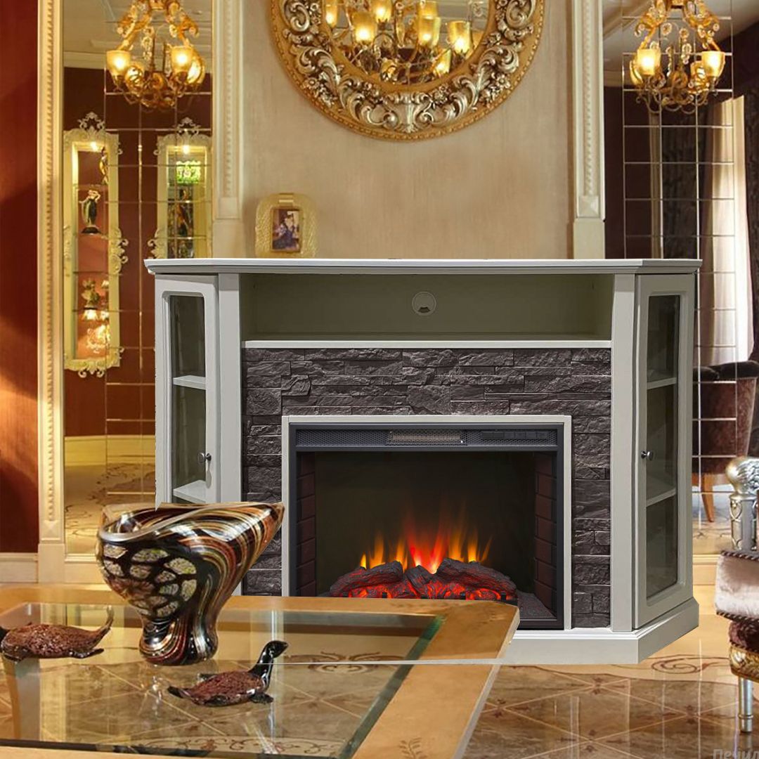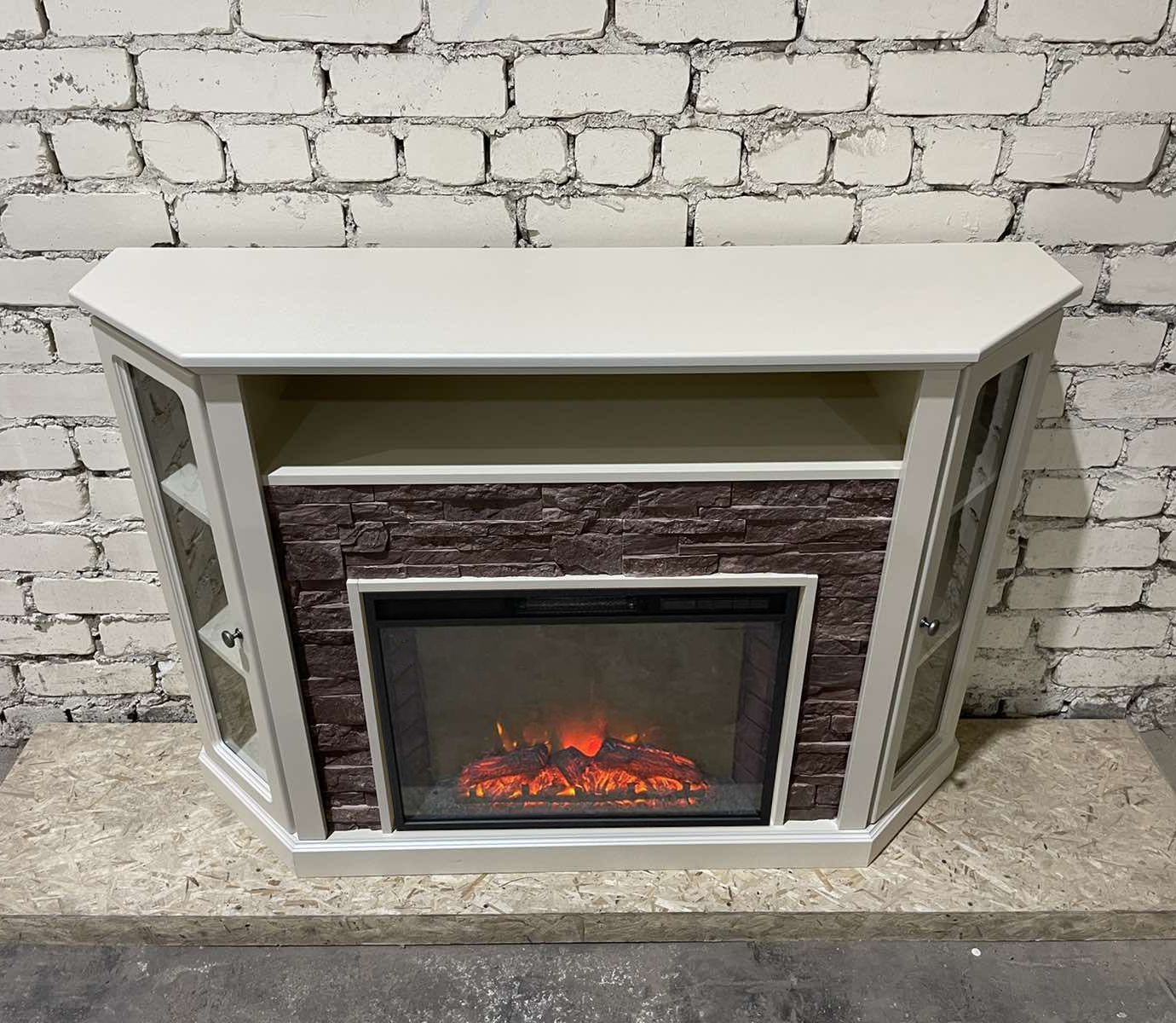 Электрокамин Харвард WT M5 с очагом Sparta 25.5 LED укомплектован верхней медиаполкой и боковыми полками. Боковые полки закрываются стеклянными дверцами, в которых используются петли плавного закрывания. Возможно изготовить подсветку дверок.