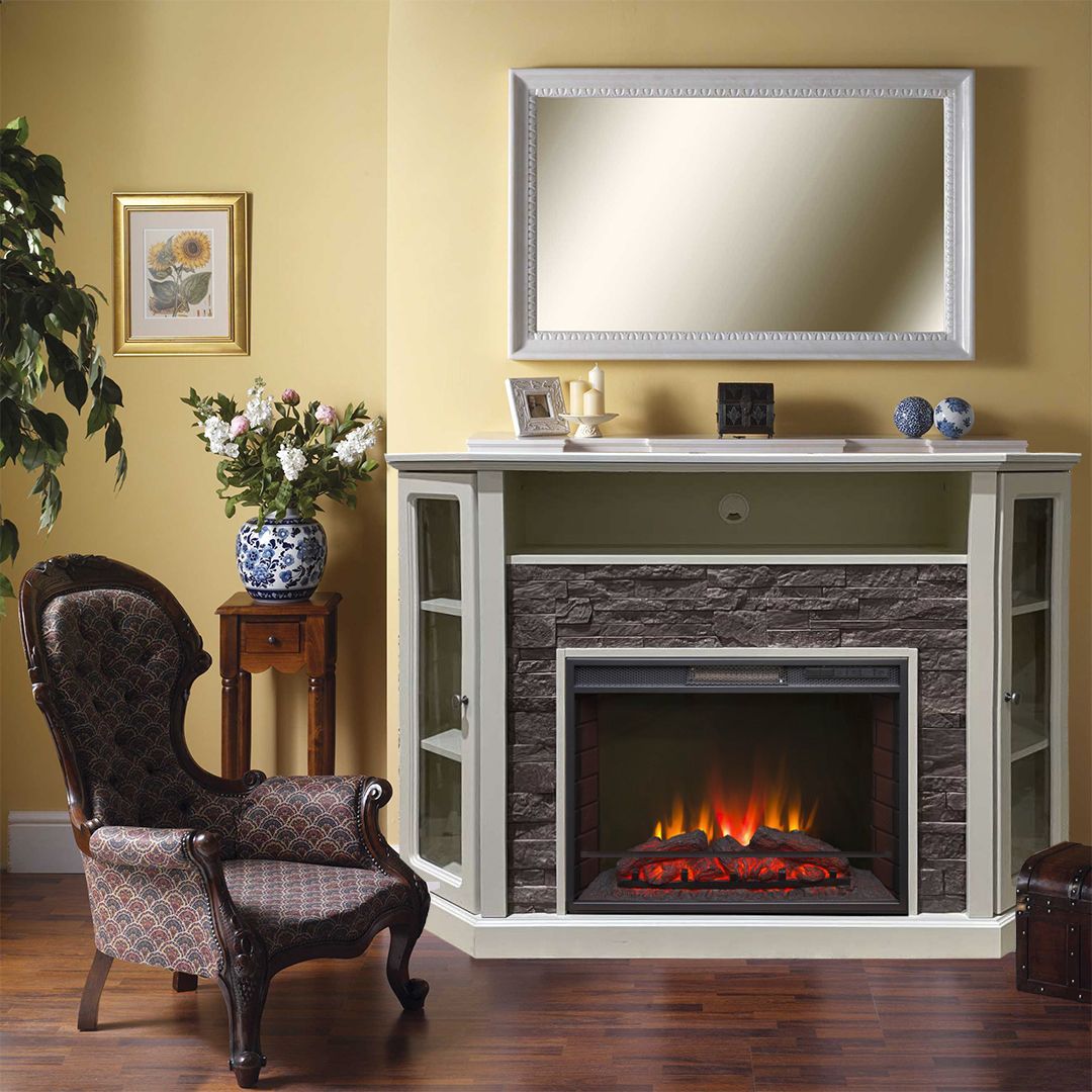 Портал укомплектован широким электроочагом Sparta 25.5 LED с великолепным разноцветным пламенем (3 цвета пламени), пламя в очаге смотрится выразительно и эффектно, а муляж дров и кирпичная кладка создают полное сходство с натуральным очагом. Эффект пламени притягивает к себе внимание с первых секунд. В очаге реализован один из самых совершенных способов визуализации пламени 2D на сегодняшний день. Визуальный эффект горящего огня создается с помощью проекционной LED-технологии.