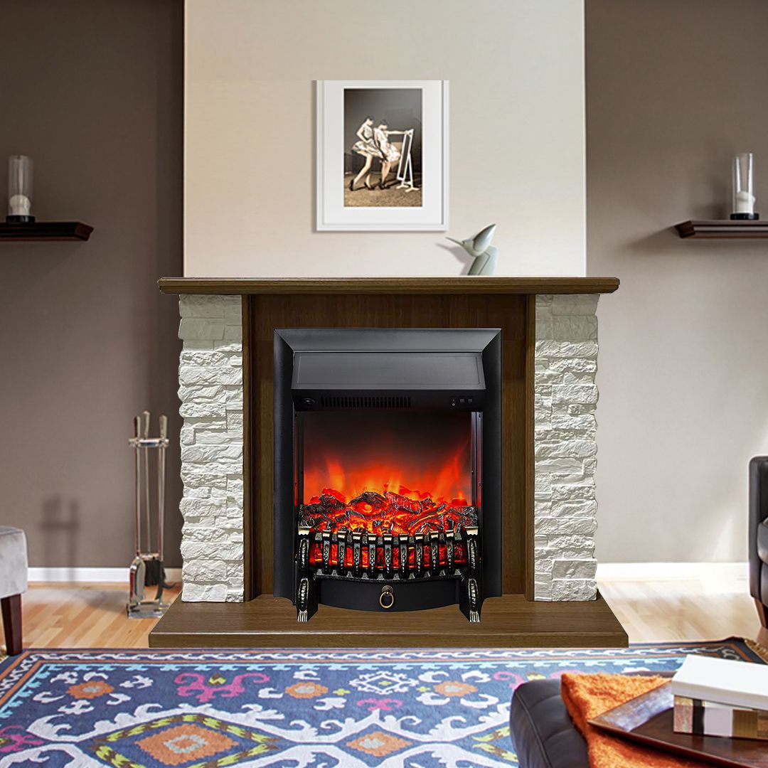 Портал укомплектован классическим электроочагом Fobos. В очаге визуальный эффект горящего огня создается с помощью проекционной LED-технологии. Присутствует звуковой эффект горения пламени и потрескивания дров. Очаг может работать как в режиме обогрева, так и в декоративном режиме без обогрева. В режиме обогрева в очаге предусмотрено 2 уровня регулировки обогрева, возможно переключение мощности обогрева 750-1500 Вт, поэтому в холодные дни данный электрокамин можно использовать как дополнительный источник тепла. Предусмотрена функция защиты от перегрева.