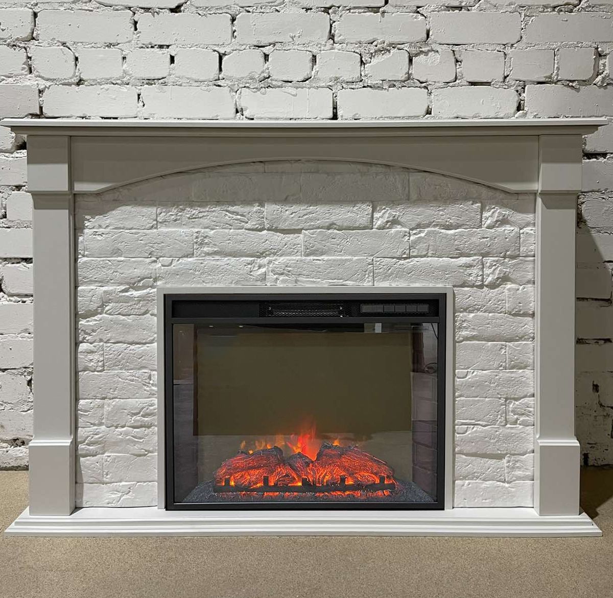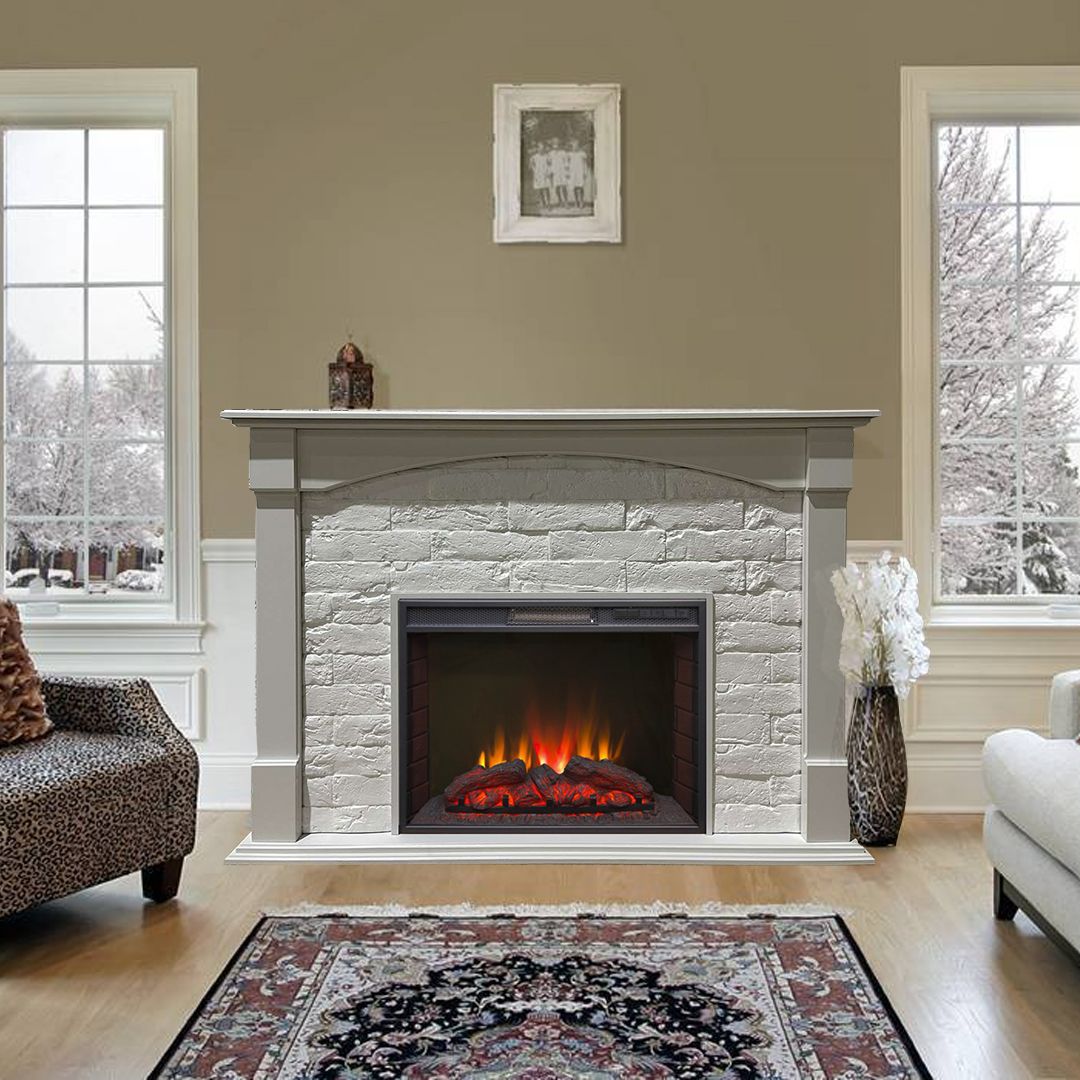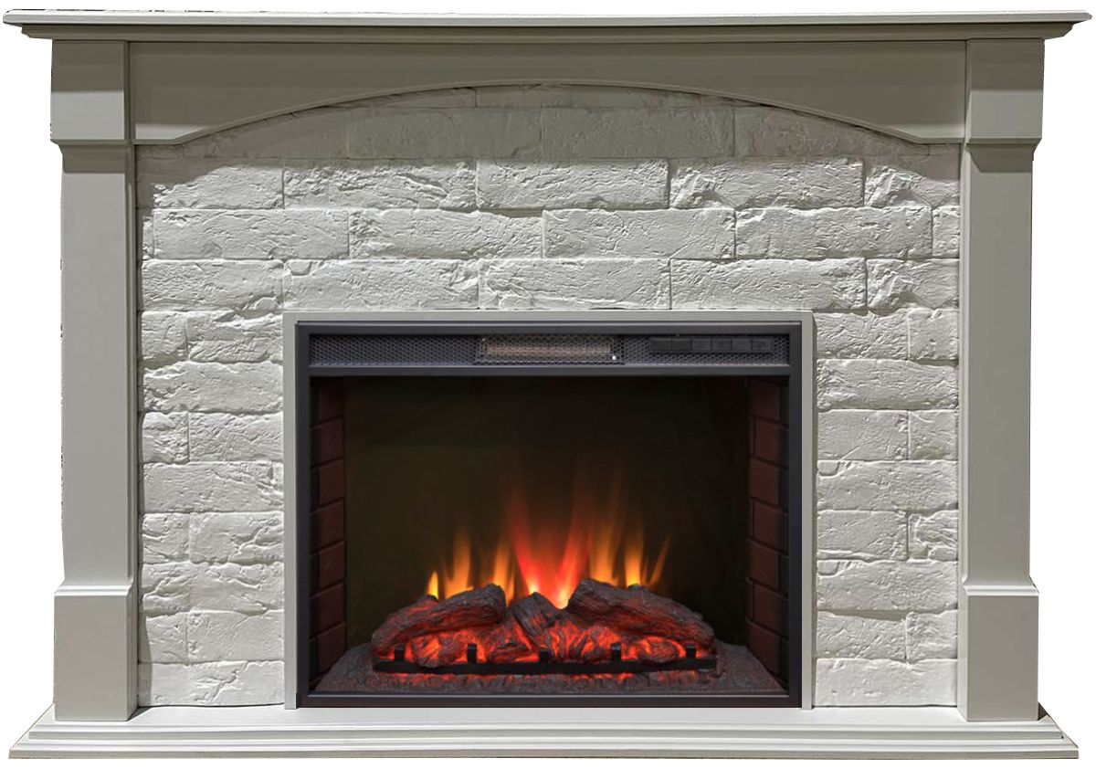 Портал укомплектован широким электроочагом Sparta 25.5 LED с великолепным разноцветным пламенем (3 цвета пламени), пламя в очаге смотрится выразительно и эффектно, а муляж дров и кирпичная кладка создают полное сходство с натуральным очагом. Эффект пламени притягивает к себе внимание с первых секунд. В очаге реализован один из самых совершенных способов визуализации пламени 2D на сегодняшний день. Визуальный эффект горящего огня создается с помощью проекционной LED-технологии.