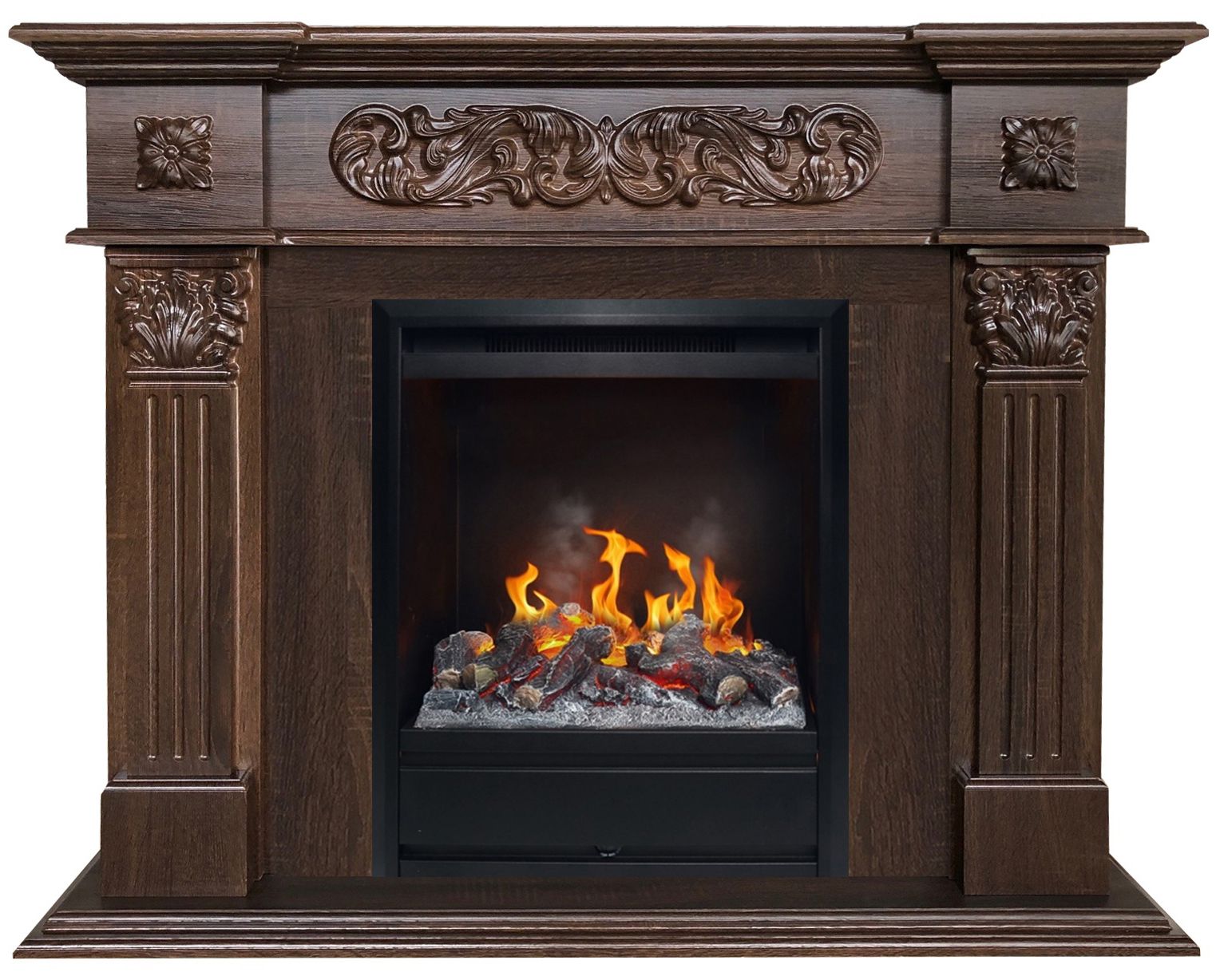 Укомплектован электроочагом 3D Olympic с технологией имитации пламени 3D, который имеет на 100% достоверный и реалистичный яркий эффект пламени. Настраиваемая высота пламени. В декоративном режиме электрический очаг потребляет всего 150 Вт в час. В дополнение к декоративному режиму имеется возможность работы в режиме обогрева мощностью 750 Вт или 1500 Вт, поэтому в холодные дни электрокамин можно использовать как дополнительный источник тепла. Предусмотрена функция защиты от перегрева. Электроочаг 3D Olympic управляется дистанционно с пульта. Также управление продублировано на панели очага. Электрический камин обеспечивает дополнительное увлажнение воздуха!