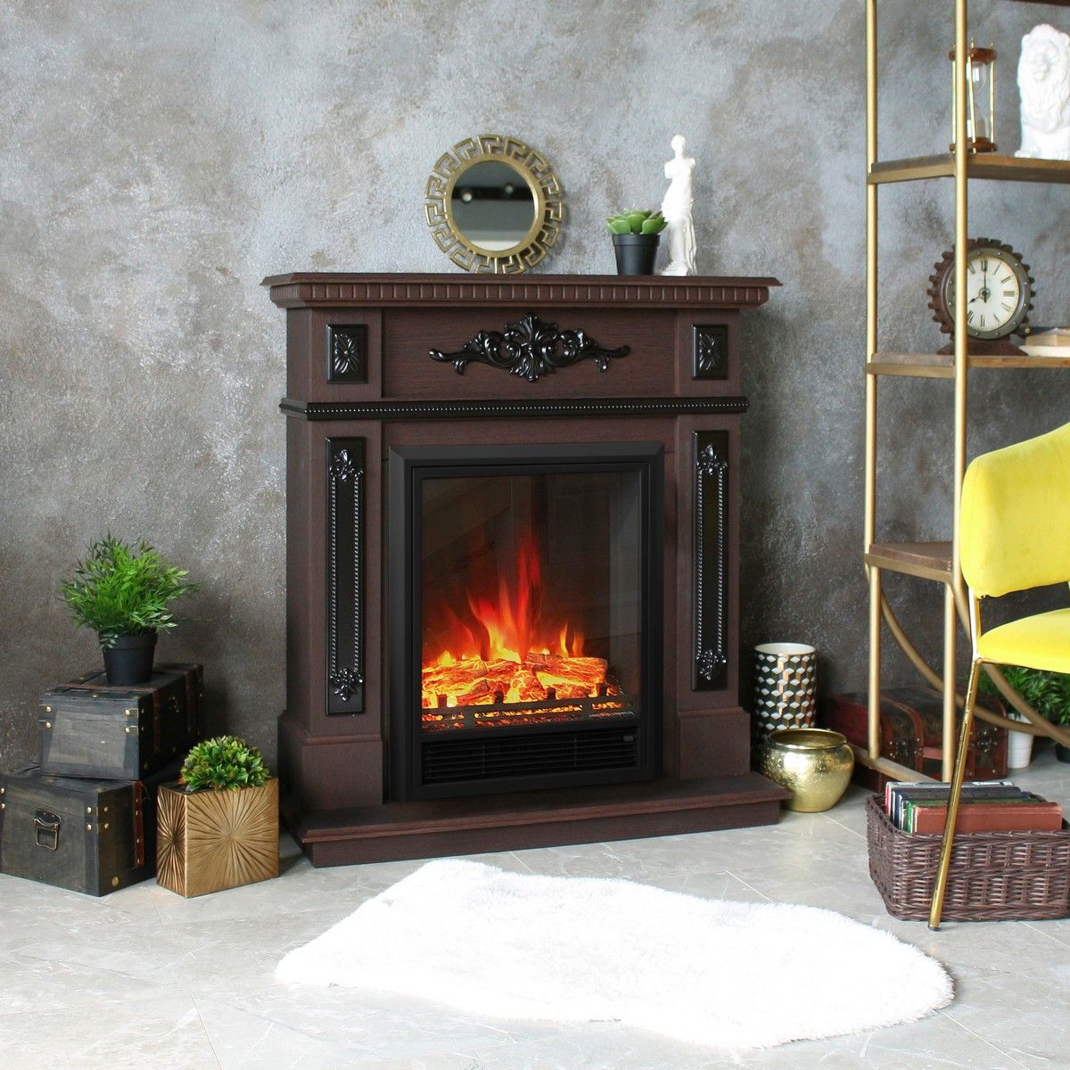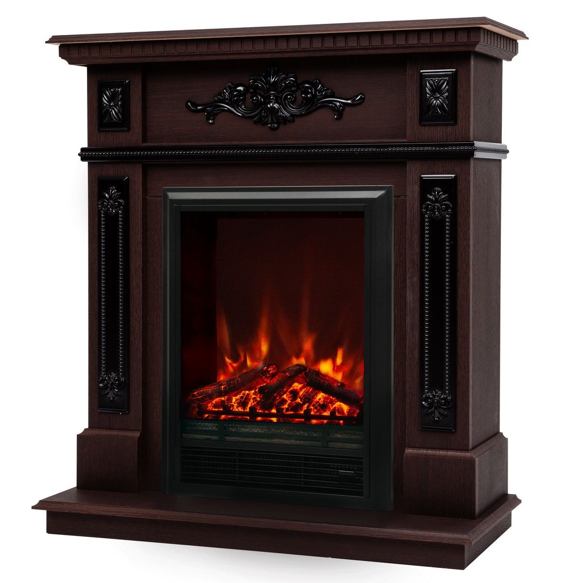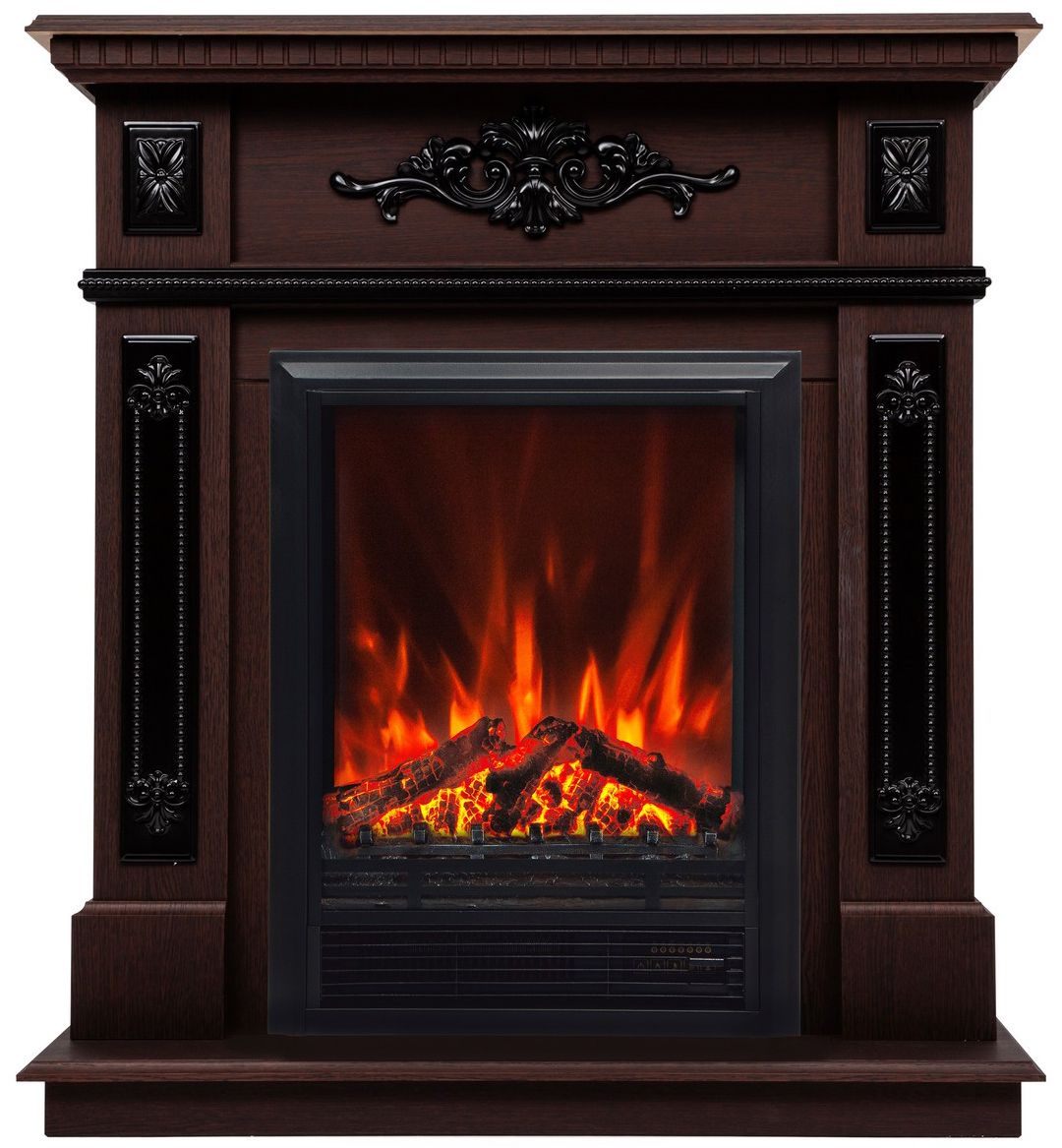 Электрокамин Lilian DN с очагом Eugene изготовлен из МДФ и экошпона в цвете орех. Элегантное решение для классических интерьеров. Электрокамин Lilian станет главным декоративным элементом любой комнаты. Утонченность и нарядность электрокамина заключается в рельефных вставках, украшенных цветочными узорами и фактурных прожилках на корпусе портала.