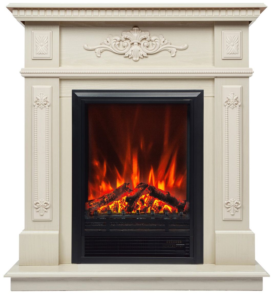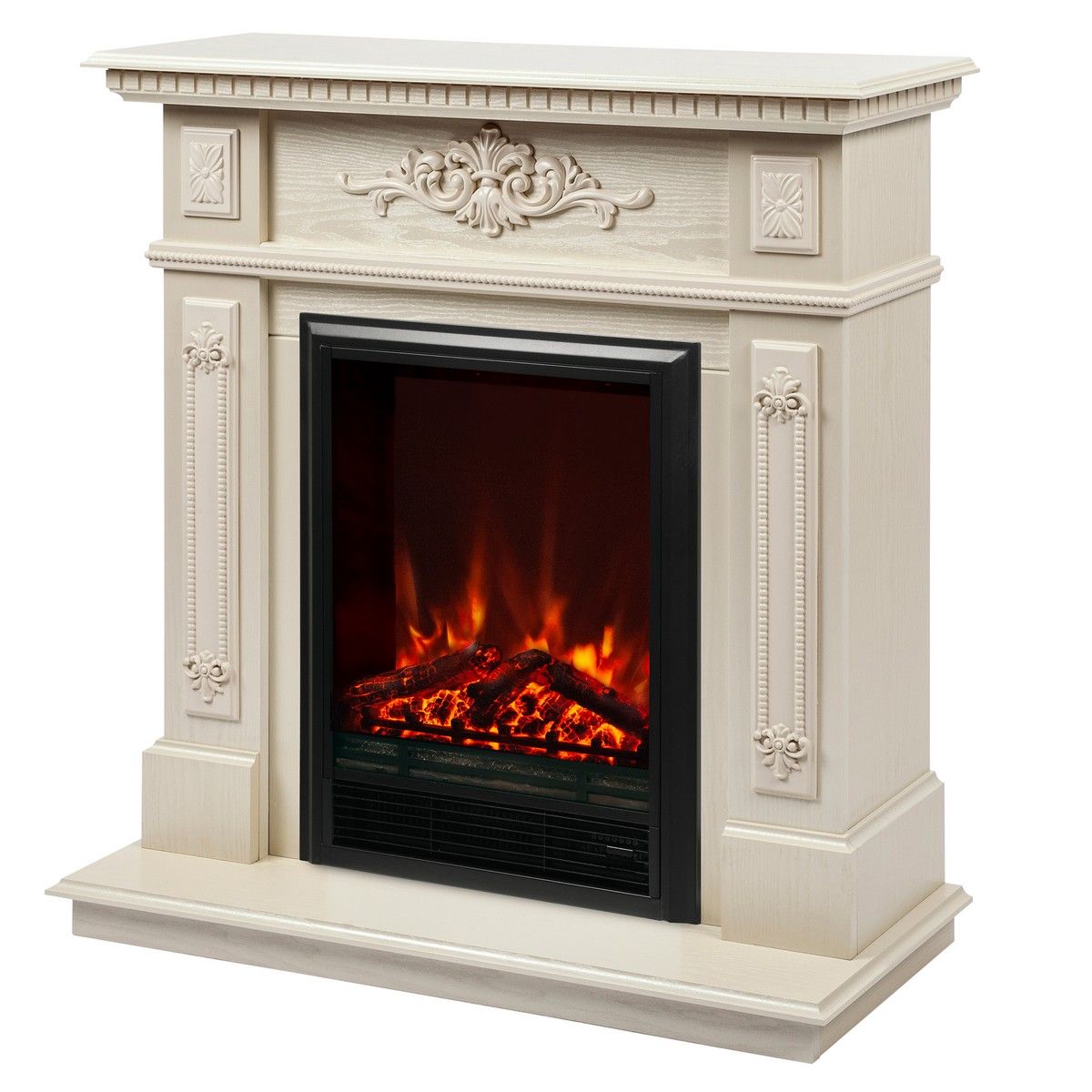 Электрокамин Lilian WT с очагом Eugene изготовлен из МДФ и экошпона в цвете жемчуг. Элегантное решение для классических интерьеров. Электрокамин Lilian станет главным декоративным элементом любой комнаты. Утонченность и нарядность электрокамина заключается в рельефных вставках, украшенных цветочными узорами и фактурных прожилках на корпусе портала.