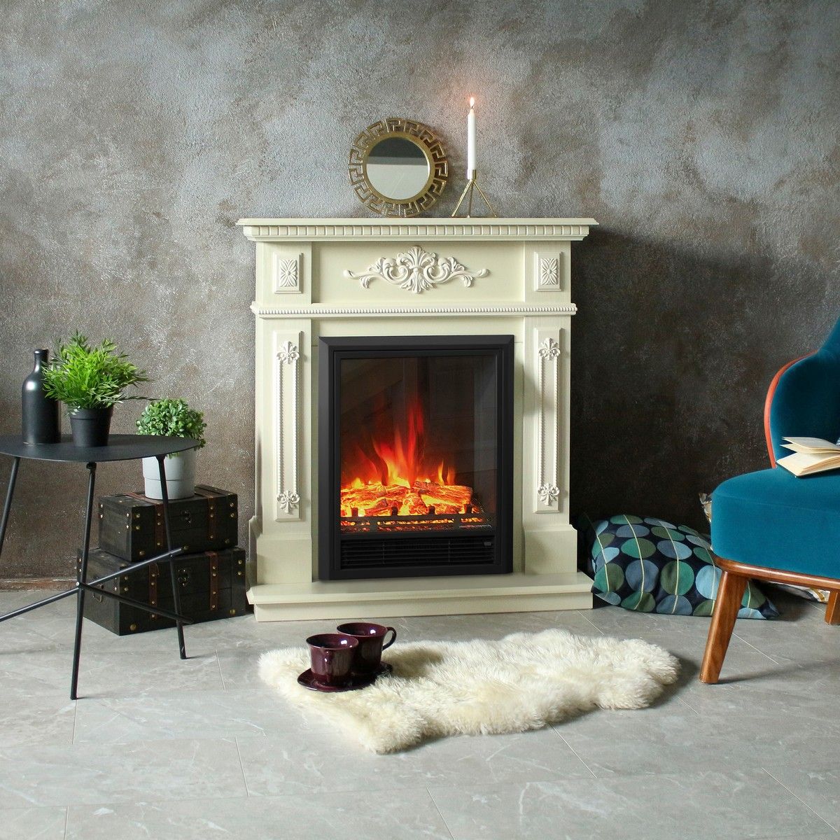 Укомплектован электроочагом Eugene - идеальное сочетание надежности, функциональности и внешнего вида. Данная модель электрического камина имеет черный цвет, строгая черная металлическая рамочка по периметру создает дополнительный дизайн. Основание электрокамина выполнено из металла. Цвет - строго черный, в составе идет муляж прогоревших дров на фоне темноматовой стенки. Для создания ощущения реалистичности пламени используется современная 2D-технология, очаг может использоваться как в режиме обогрева в холодное время года, так и в декоративном режиме, когда функция обогрева отключена. Очаг подойдет для любой из ваших комнат.
