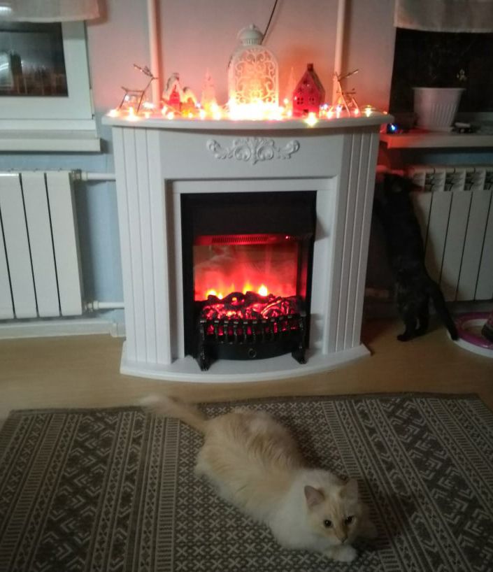 - Есть звуковой эффект потрескивания дров