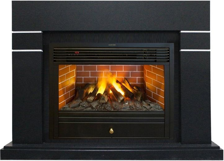 В комплекте используется широкий 3D электроочаг 3D Novara 26, который оснащен современной технологией имитации 3D пламени. Абсолютно реалистичная имитация пламени, которая выглядит максимально достоверно за счёт эффекта дыма. Электроочаг оборудован защитой включения без воды. Присутствует звуковой эффект горения пламени и потрескивания дров.