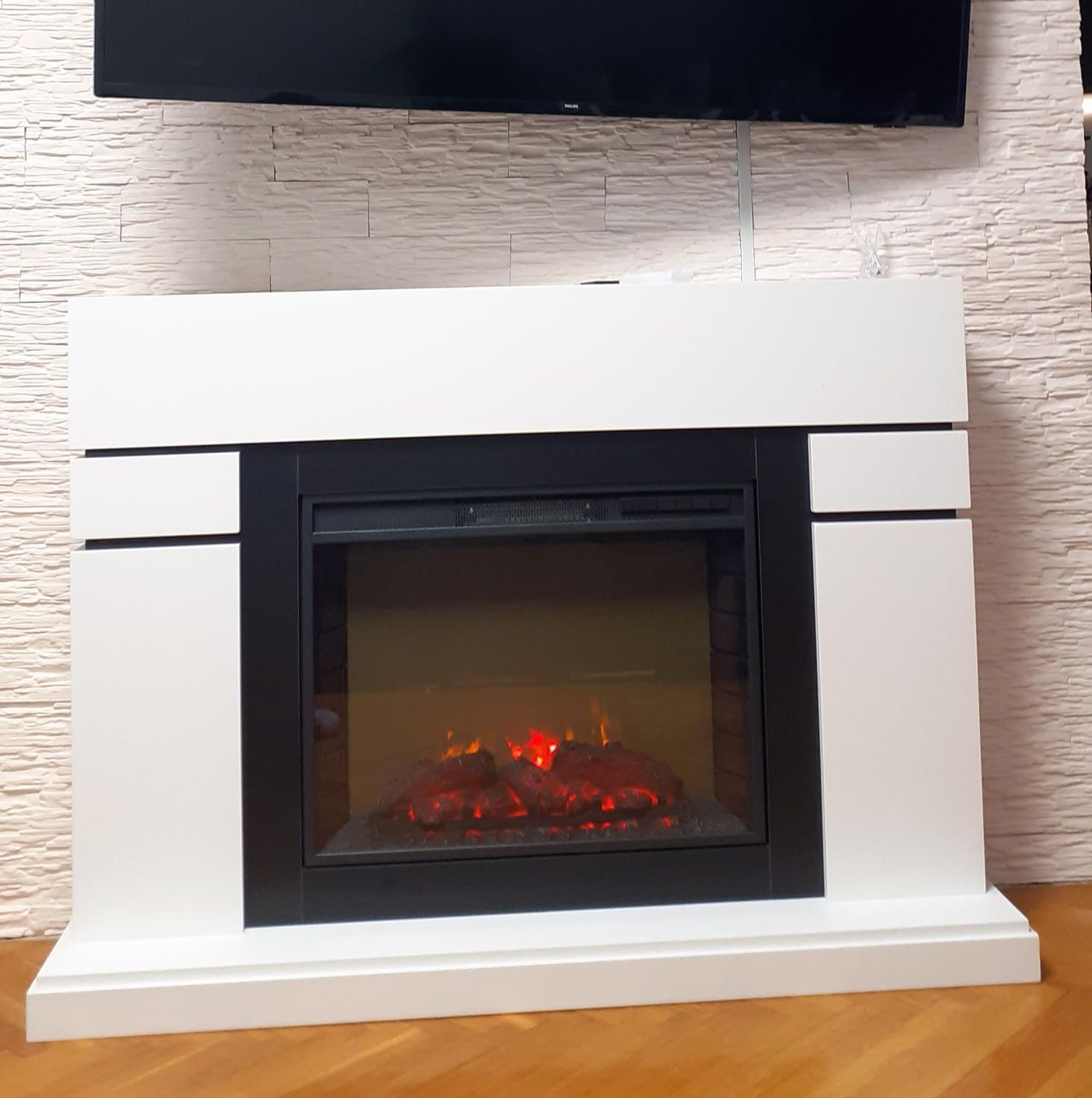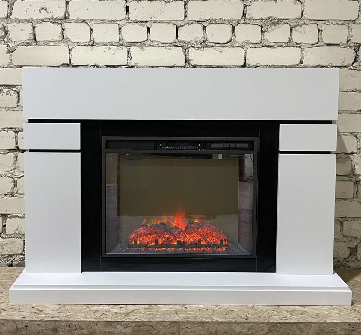 Портал укомплектован широким электроочагом Sparta 25.5 LED с великолепным разноцветным пламенем (3 цвета пламени), пламя в очаге смотрится выразительно и эффектно, а муляж дров и кирпичная кладка создают полное сходство с натуральным очагом. Эффект пламени притягивает к себе внимание с первых секунд. В очаге реализован один из самых совершенных способов визуализации пламени 2D на сегодняшний день. Визуальный эффект горящего огня создается с помощью проекционной LED-технологии.