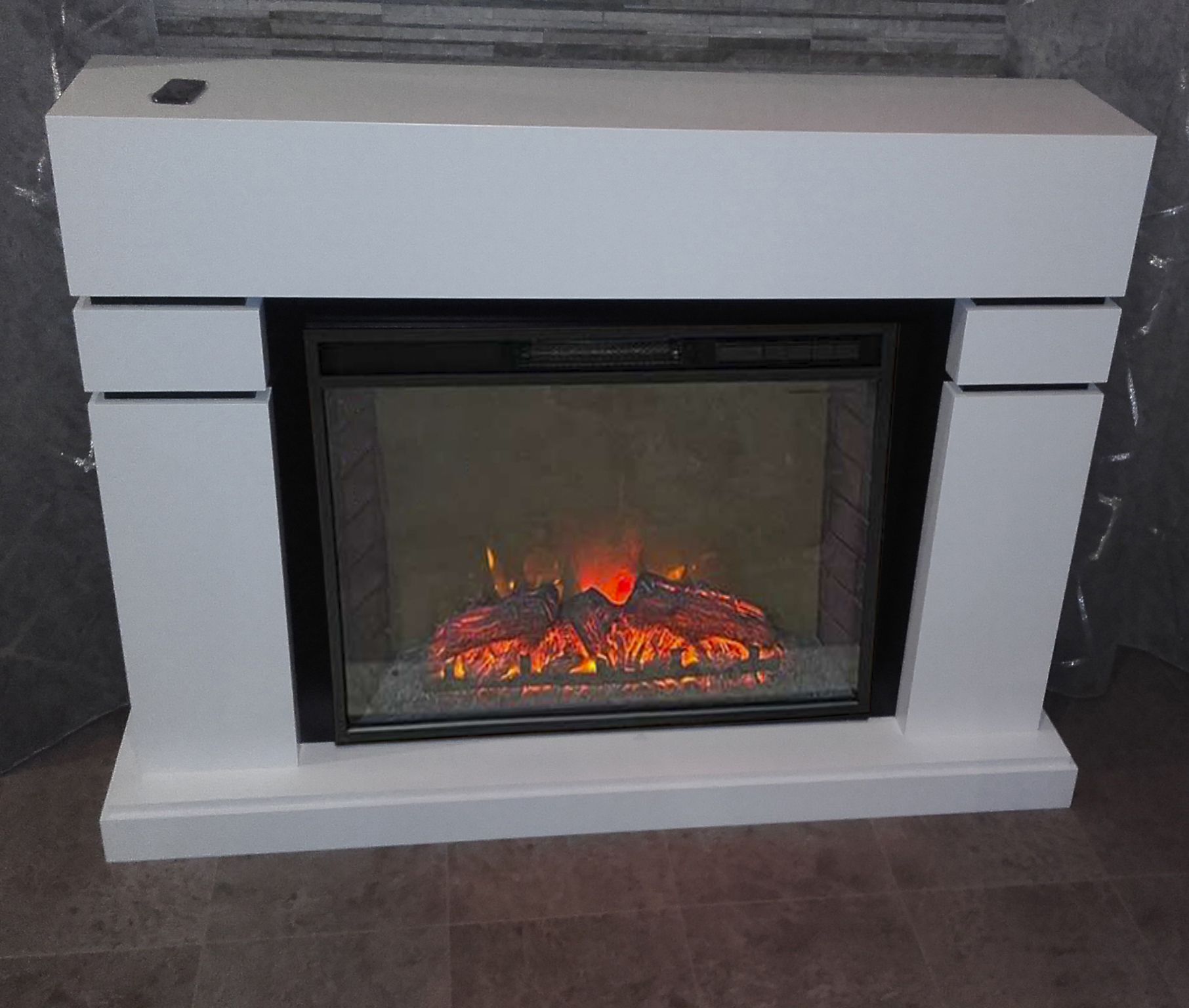 В очаге предусмотрена функция регулировки яркости пламени, термостат, таймер отключения и защита от перегрева. Присутствует звуковой эффект горения пламени и потрескивания дров. Очаг может работать как в режиме обогрева, так и в декоративном режиме без обогрева. В режиме обогрева в очаге предусмотрено 2 уровня регулировки обогрева, возможно переключение мощности обогрева 1000-2000 Вт, поэтому в холодные дни данный электрокамин можно использовать как дополнительный источник тепла. Комплектуется пультом дистанционного управления.