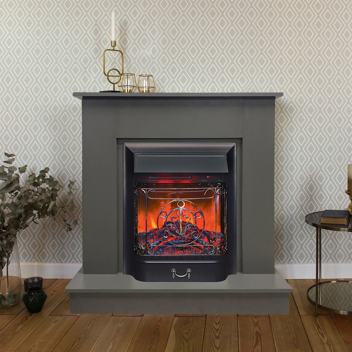 Электрокамин Лорд Люкс GR с очагом Majestic изготовлен из высококачественного ламинированного ДСП премиум-класса в благородном цвете графит (черно-серый цвет с перламутровыми бликами).
