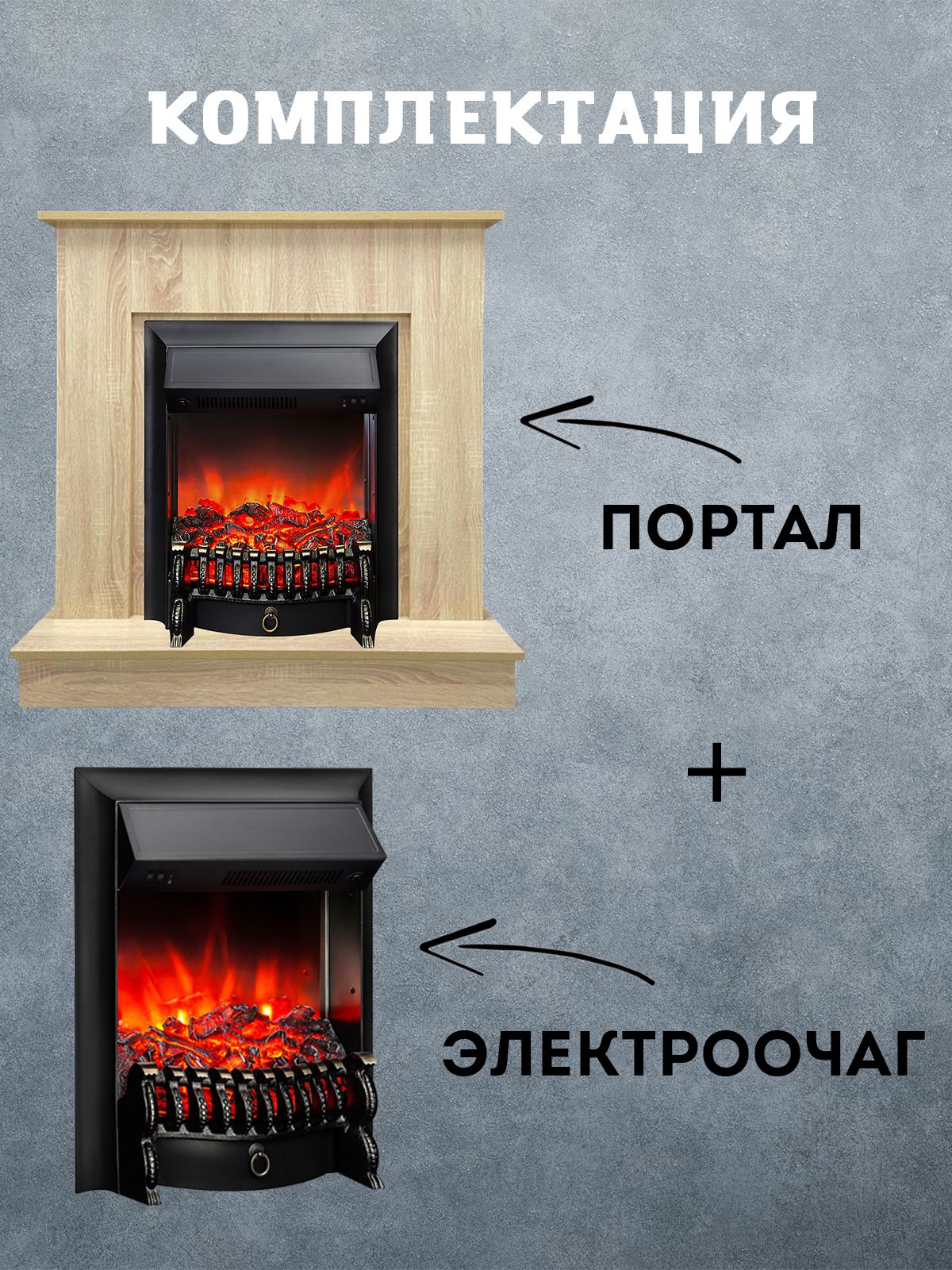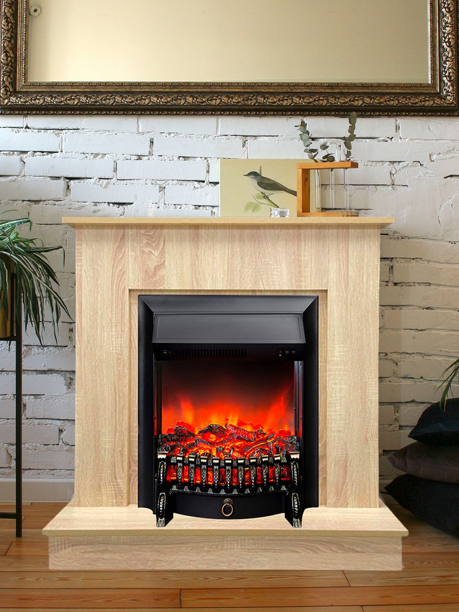 Портал электрокамина укомплектован классическим электроочагом Fobos. В очаге визуальный эффект горящего огня создается с помощью проекционной LED-технологии. Присутствует звуковой эффект горения пламени и потрескивания дров.