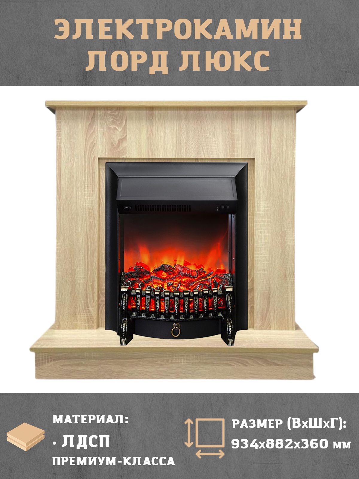 Электрокамин Лорд Люкс SO с очагом Fobos изготовлен из высококачественного ламинированного ДСП премиум-класса в шикарном цвете дуб сонома.