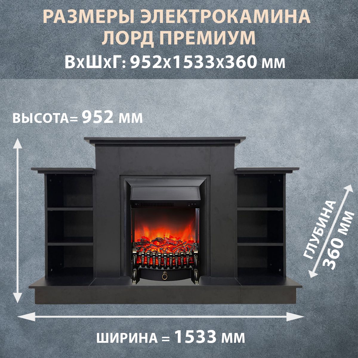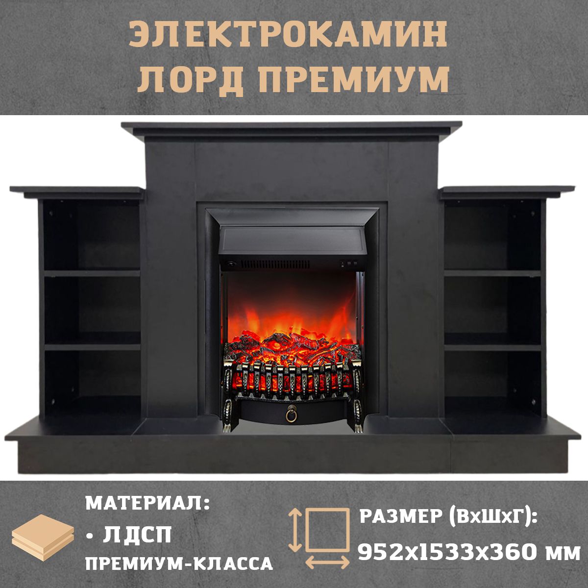 Электрокамин Лорд Премиум DK с очагом Fobos изготовлен из высококачественного ламинированного ДСП премиум-класса в чёрном цвете.