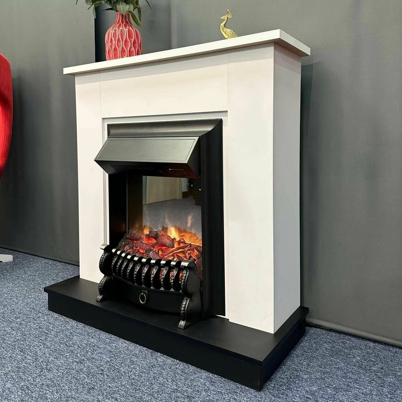Портал электрокамина укомплектован классическим электроочагом Fobos. В очаге визуальный эффект горящего огня создается с помощью проекционной LED-технологии. Присутствует звуковой эффект горения пламени и потрескивания дров.