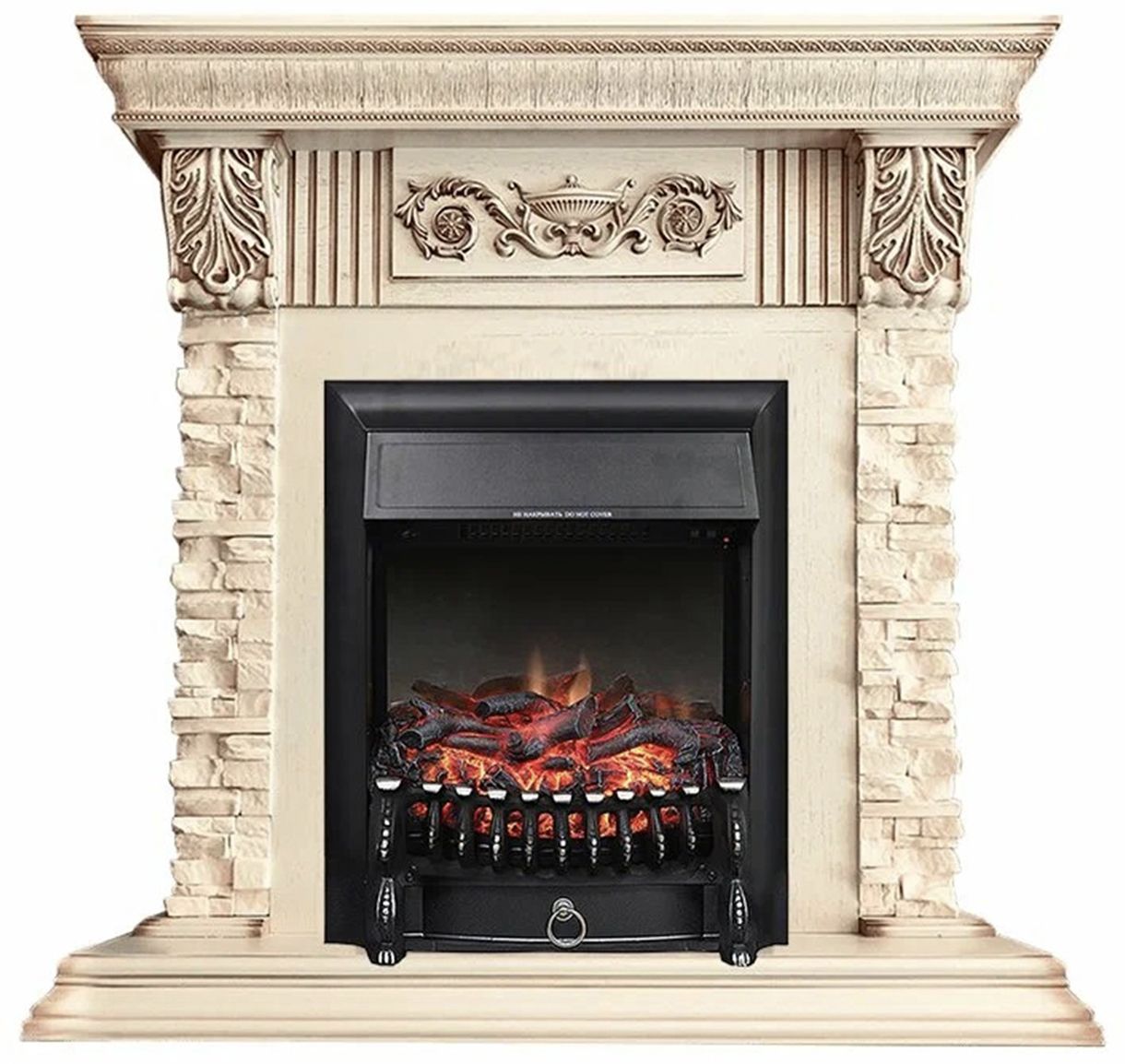 Электрокамин Luxemburg WTS с очагом Fobos - сланец бежевый в цвете слоновая кость с патиной изготовлен из МДФ и облицован искусственным камнем. Украшен деревянной резьбой. Электрокамин выполнен в классическом стиле и оформлен декоративной отделкой. Отлично впишется практически в любой интерьер.