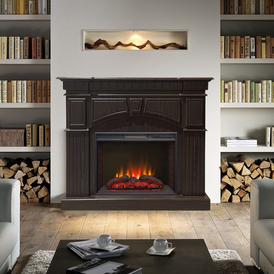 Портал укомплектован широким электроочагом Sparta 25.5 LED с великолепным разноцветным пламенем (3 цвета пламени), пламя в очаге смотрится выразительно и эффектно, а муляж дров и кирпичная кладка создают полное сходство с натуральным очагом. Эффект пламени притягивает к себе внимание с первых секунд. В очаге реализован один из самых совершенных способов визуализации пламени 2D на сегодняшний день. Визуальный эффект горящего огня создается с помощью проекционной LED-технологии.