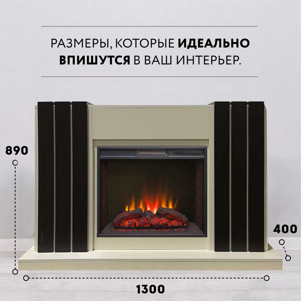 Портал укомплектован широким электроочагом Sparta 25.5 LED с великолепным разноцветным пламенем (3 цвета пламени), пламя в очаге смотрится выразительно и эффектно, а муляж дров и кирпичная кладка создают полное сходство с натуральным очагом. Эффект пламени притягивает к себе внимание с первых секунд. В очаге реализован один из самых совершенных способов визуализации пламени 2D на сегодняшний день. Визуальный эффект горящего огня создается с помощью проекционной LED-технологии.
