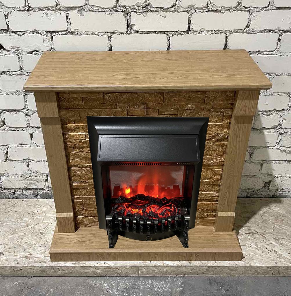 Портал укомплектован классическим электроочагом Fobos. В очаге визуальный эффект горящего огня создается с помощью проекционной LED-технологии. Присутствует звуковой эффект горения пламени и потрескивания дров. Очаг может работать как в режиме обогрева, так и в декоративном режиме без обогрева. В режиме обогрева в очаге предусмотрено 2 уровня регулировки обогрева, возможно переключение мощности обогрева 750-1500 Вт, поэтому в холодные дни данный электрокамин можно использовать как дополнительный источник тепла. Предусмотрена функция защиты от перегрева.