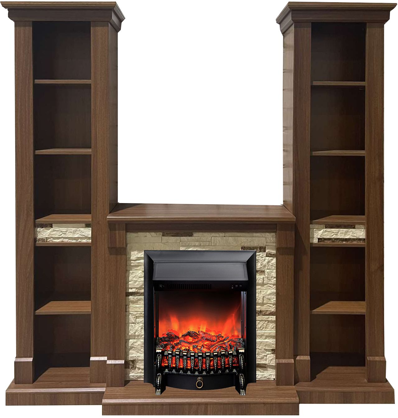 Портал укомплектован классическим электроочагом Fobos. В очаге визуальный эффект горящего огня создается с помощью проекционной LED-технологии. Присутствует звуковой эффект горения пламени и потрескивания дров. Очаг может работать как в режиме обогрева, так и в декоративном режиме без обогрева. В режиме обогрева в очаге предусмотрено 2 уровня регулировки обогрева, возможно переключение мощности обогрева 750-1500 Вт, поэтому в холодные дни данный электрокамин можно использовать как дополнительный источник тепла. Предусмотрена функция защиты от перегрева.