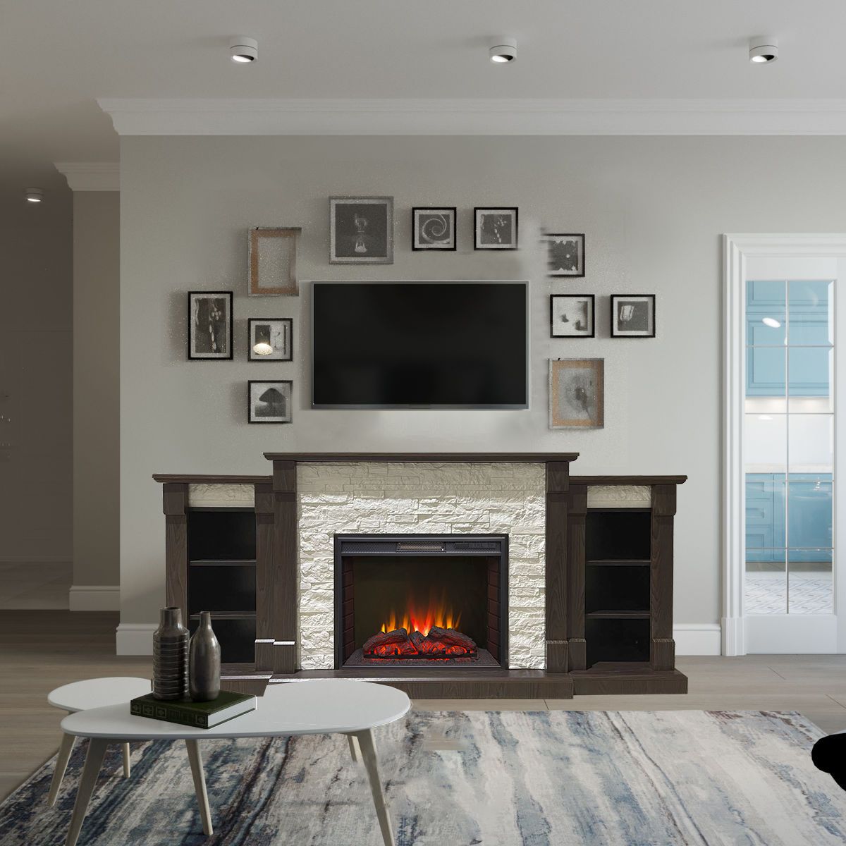 Портал укомплектован широким электроочагом Sparta 25.5 LED с великолепным разноцветным пламенем (3 цвета пламени), пламя в очаге смотрится выразительно и эффектно, а муляж дров и кирпичная кладка создают полное сходство с натуральным очагом. Эффект пламени притягивает к себе внимание с первых секунд. В очаге реализован один из самых совершенных способов визуализации пламени 2D на сегодняшний день. Визуальный эффект горящего огня создается с помощью проекционной LED-технологии.