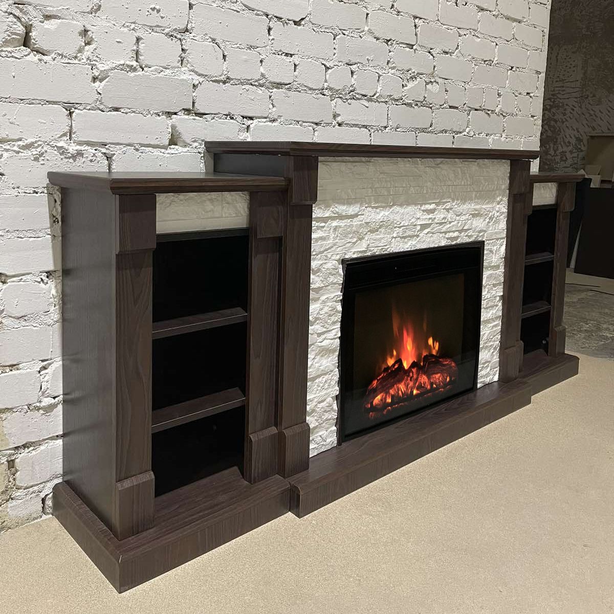 Портал дополняют тумбы с тремя секциями полок по обе стороны от топки, которые обеспечат вам пространство для хранения всех ваших любимых книг, газет и домашних аксессуаров. Уникальностью этого портала является компактность и широкий модельный ряд исполнения под различные очаги и размеры. Не смотря на его габариты в собранном состоянии, в упаковке он может быть перевезен в обычном легковом автомобиле. Поставляется в разобранном виде, в комплекте идет подробная инструкция по сборке и установке.