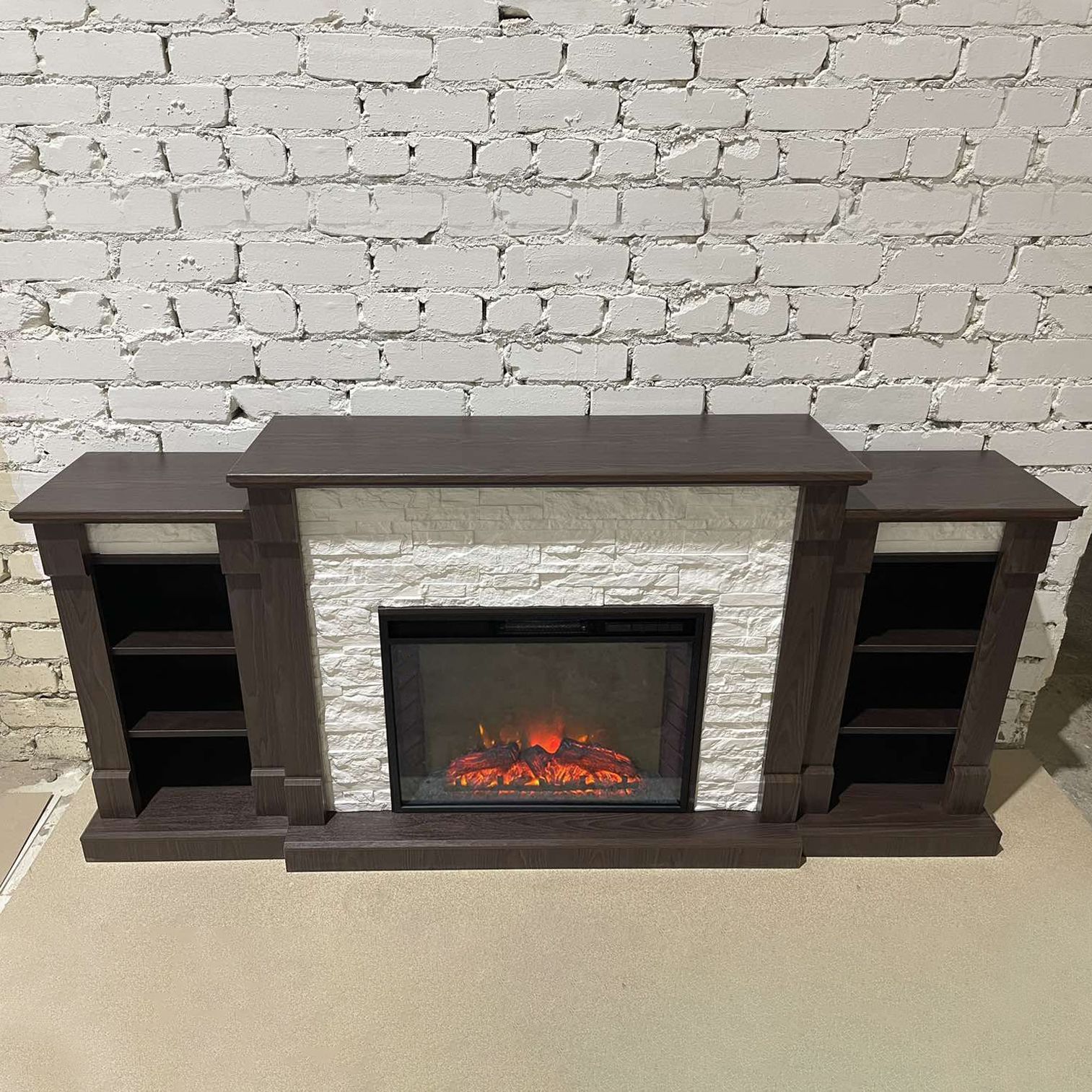 Электрокамин Моника LUX AO M2 с очагом Sparta 25.5 изготовлен из МДФ в цвете дуб темный и облицован искусственным камнем белого цвета. На ваш выбор 6 цветов искусственного камня.